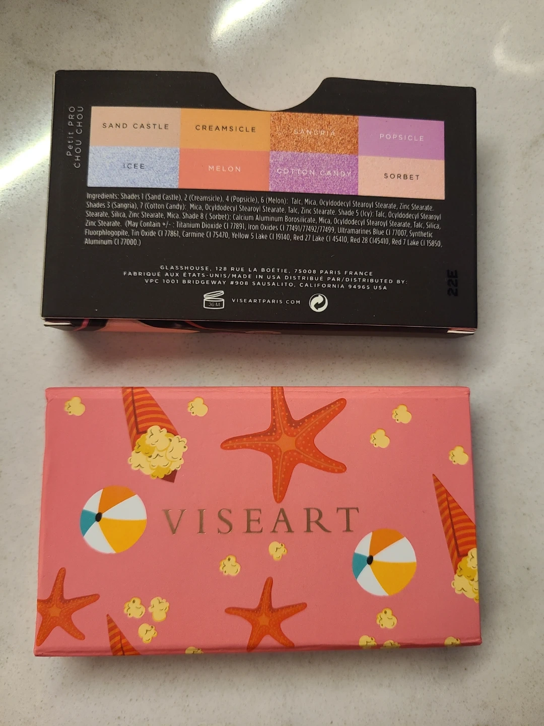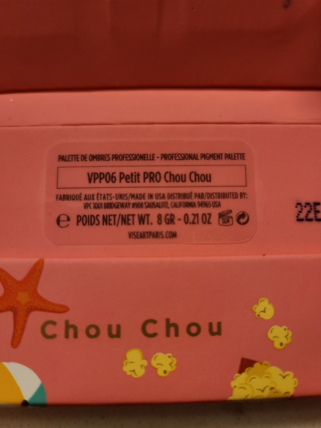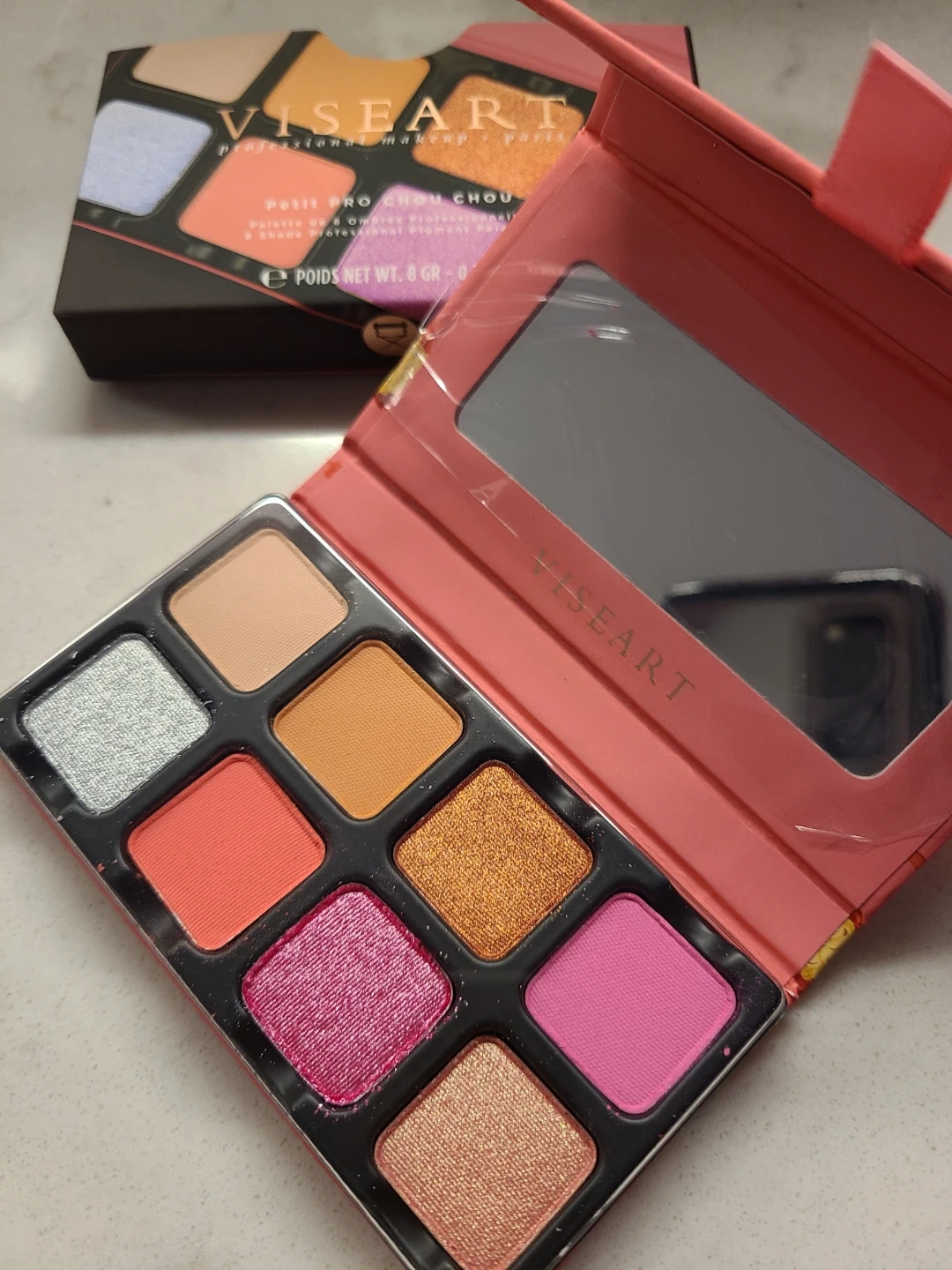 Viseart Petit Pro Chou Chou eyeshadow palette. This professional pigment palette contains 8 shades. It weighs 8 grams / 0.21 oz.