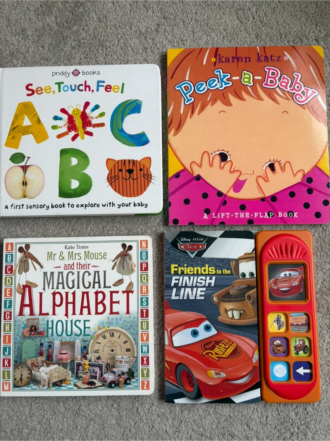 a bundle of toddlers board books/ interactive book (cars have sound ) are perfect for little hands and curious minds. Great for early learning and sensory exploration!