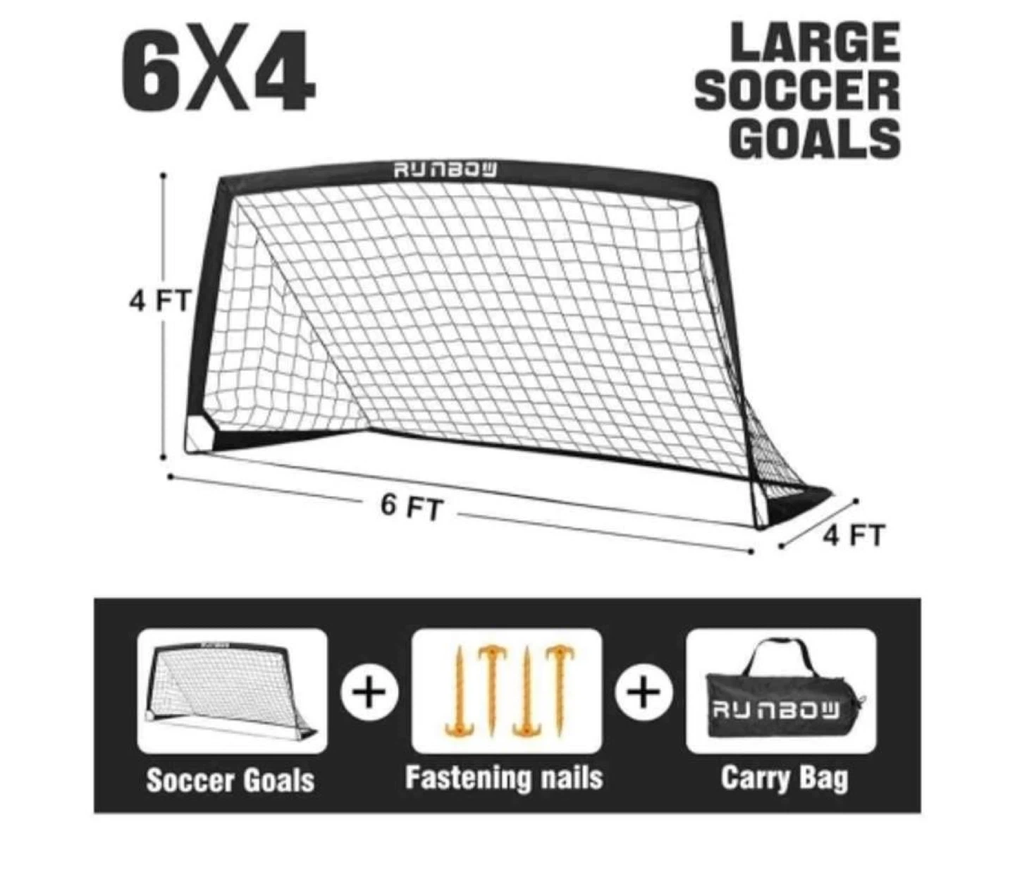 Buy & SellRUNBOW 6x4 FT Large Soccer GoalsRUNBOW 6x4 FT Large Soccer Goals$52Selling a RUNBOW 6x4 FT large soccer goal set. Includes soccer goals, fastening nails, and a carry bag. Perfect for practice or fun backyard games!ConditionNewWHERE TO MEET6670 3rd LineView MapSELLERverifiedPeterTottenham820 reviews0 chats·0 favorites·1 viewsSEND CHAT TO SELLERHi Peter! I’m interested in your listing.Hi Peter! I’m interested in your listing.Get the Karrot app to chatSign In to chat