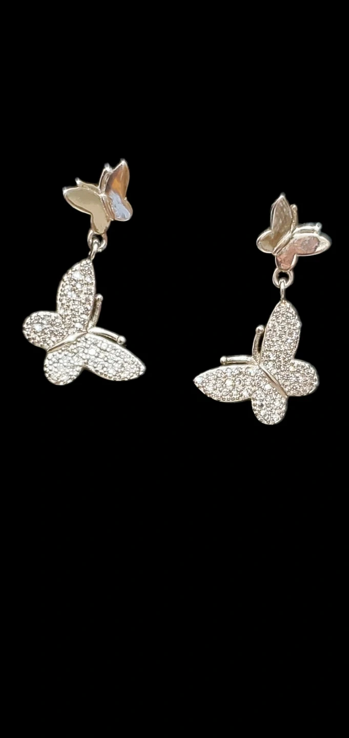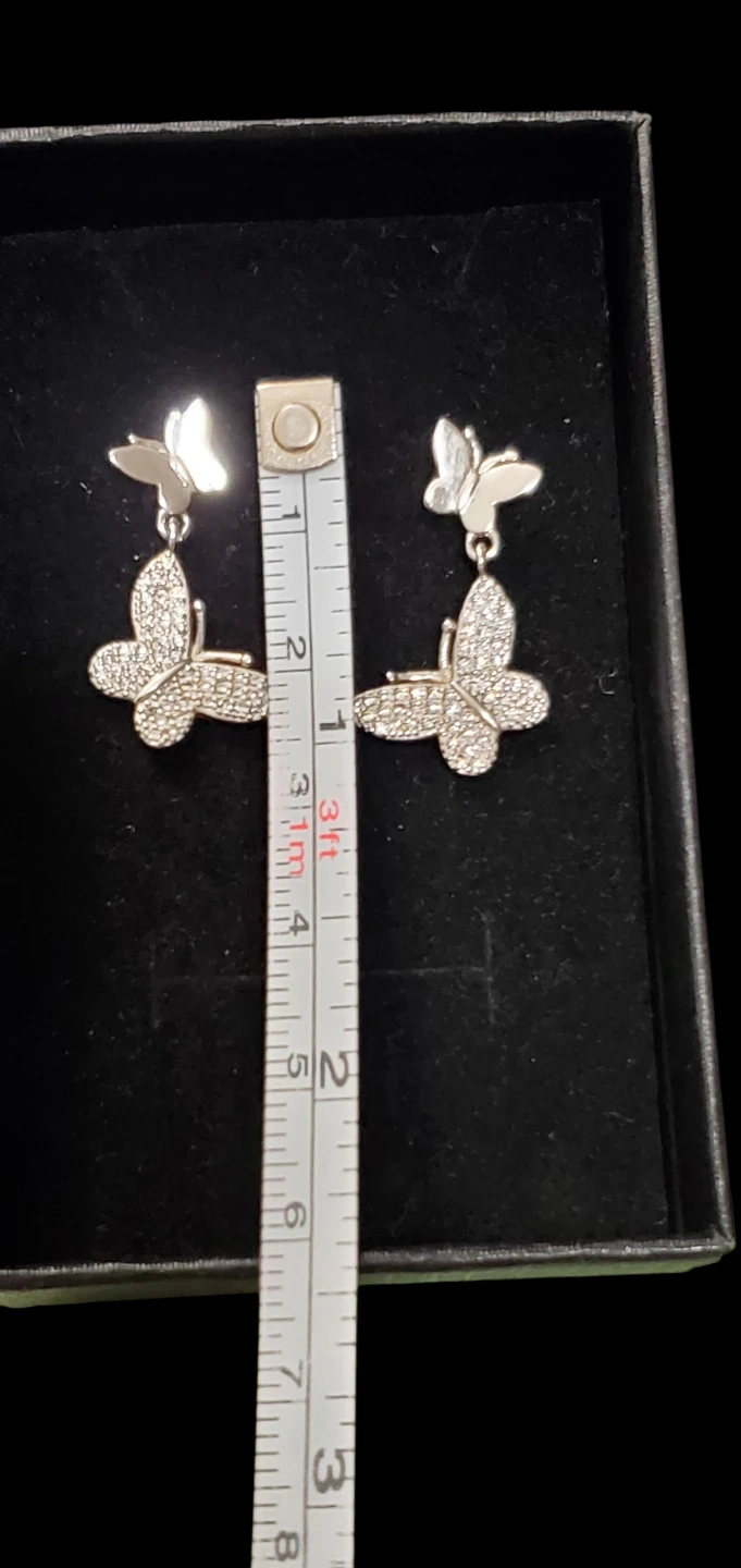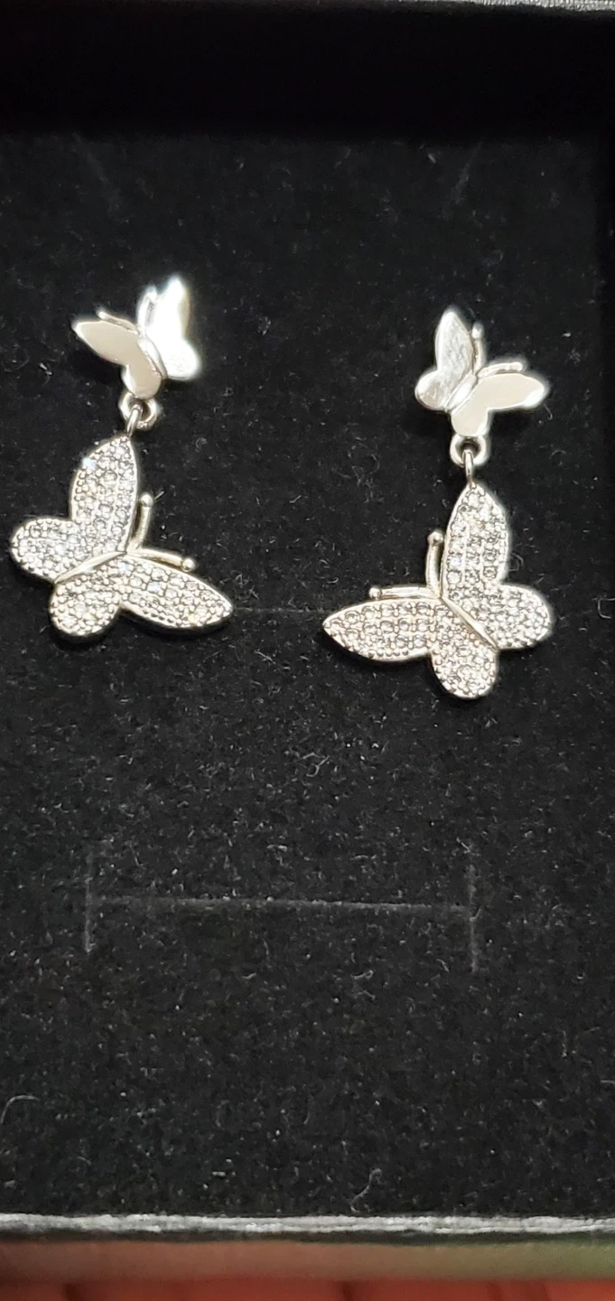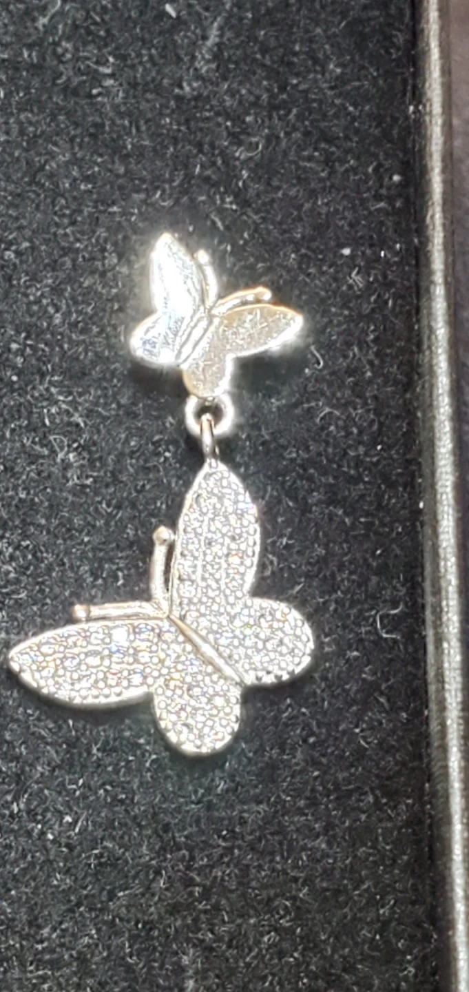Selling a pair of beautiful butterfly dangle earrings. These are sterling silver 925 and feature sparkly cz stones. They measure approximately 1.5 inches long. A lovely addition to any jewellery collection!