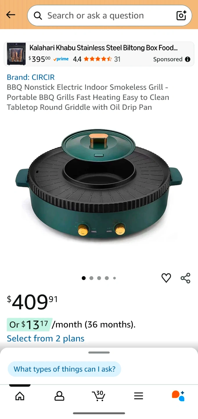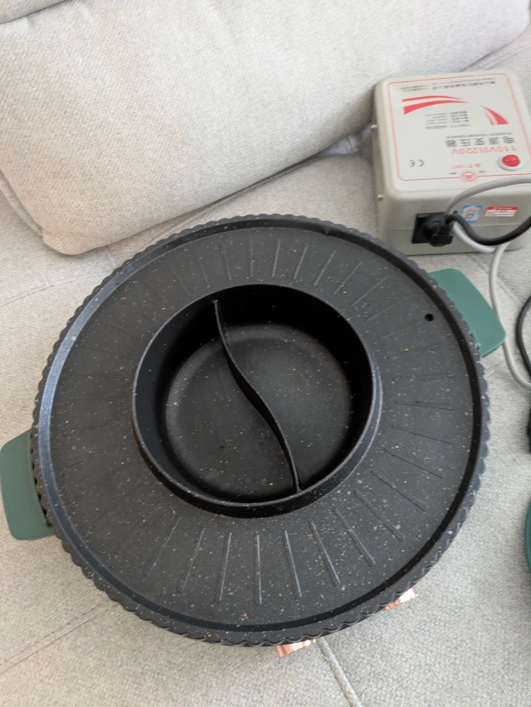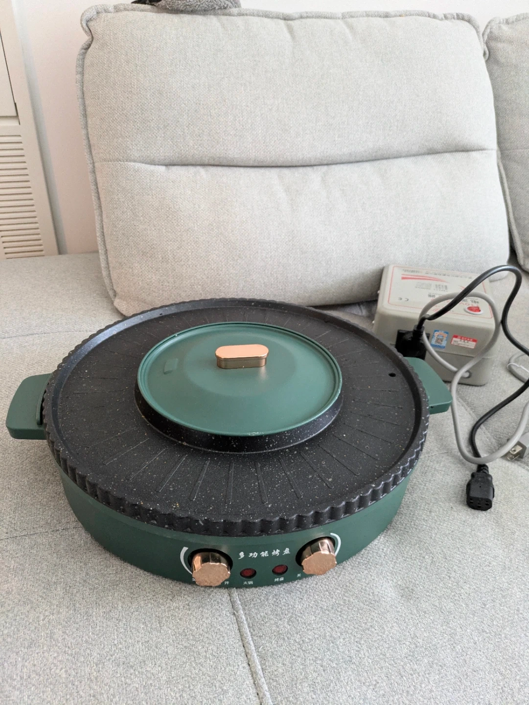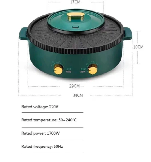 Selling an indoor smokeless electric grill and hot pot combo. It features a non-stick surface and a temperature range of 50-240°C. Includes a 1700W power rating PLUS a 110V/220V power transformer.