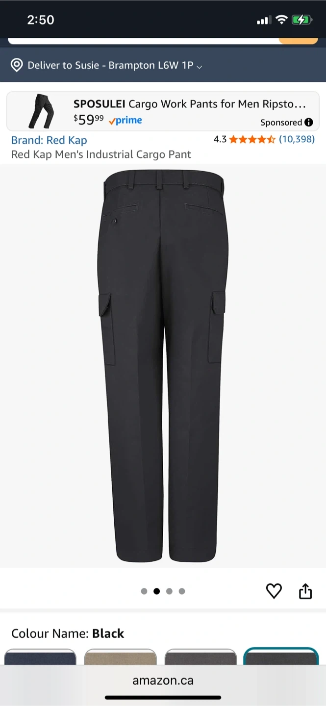 NEW Red Kap Men's Industrial Cargo Pants Size W42 L32 Black