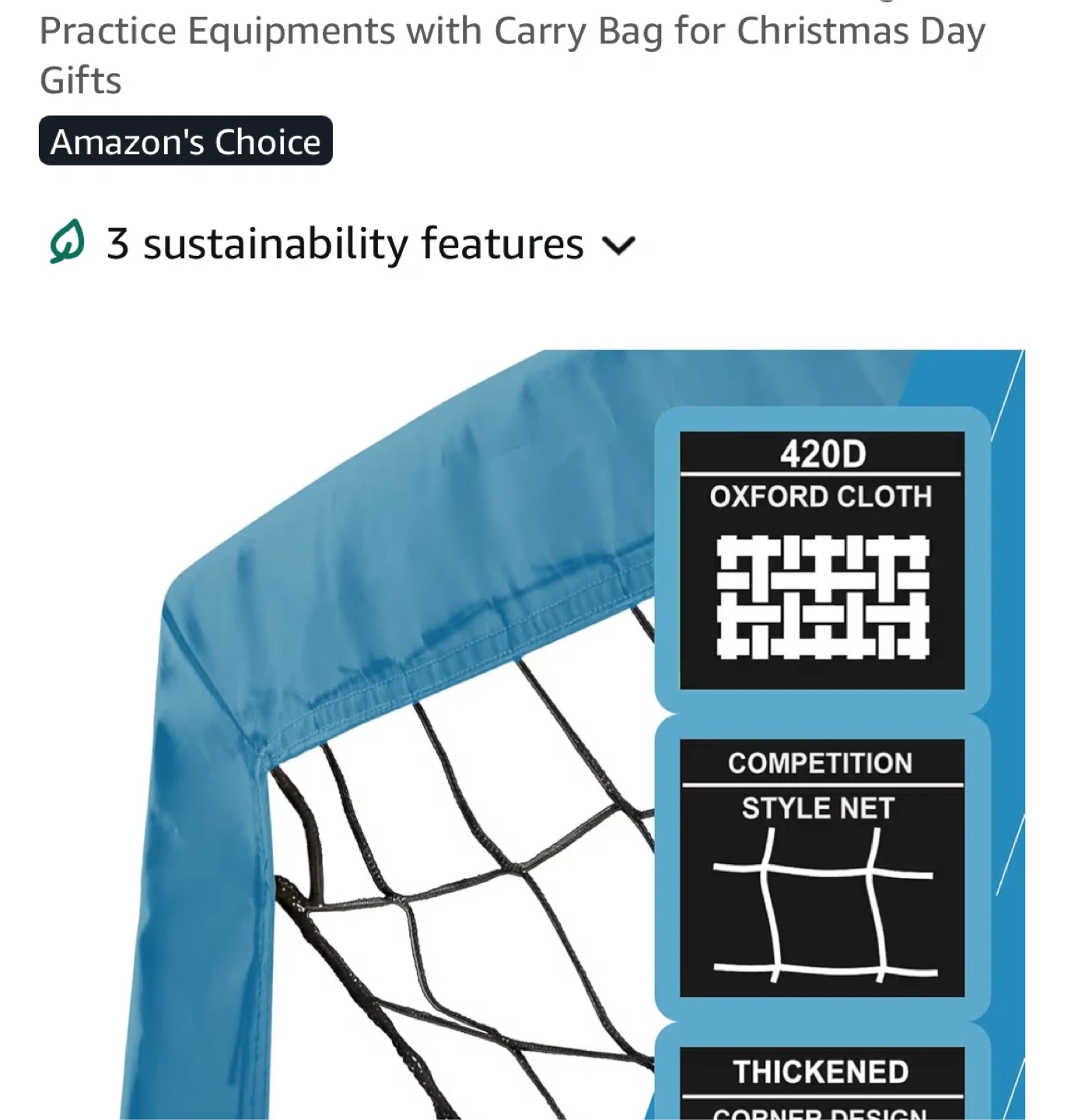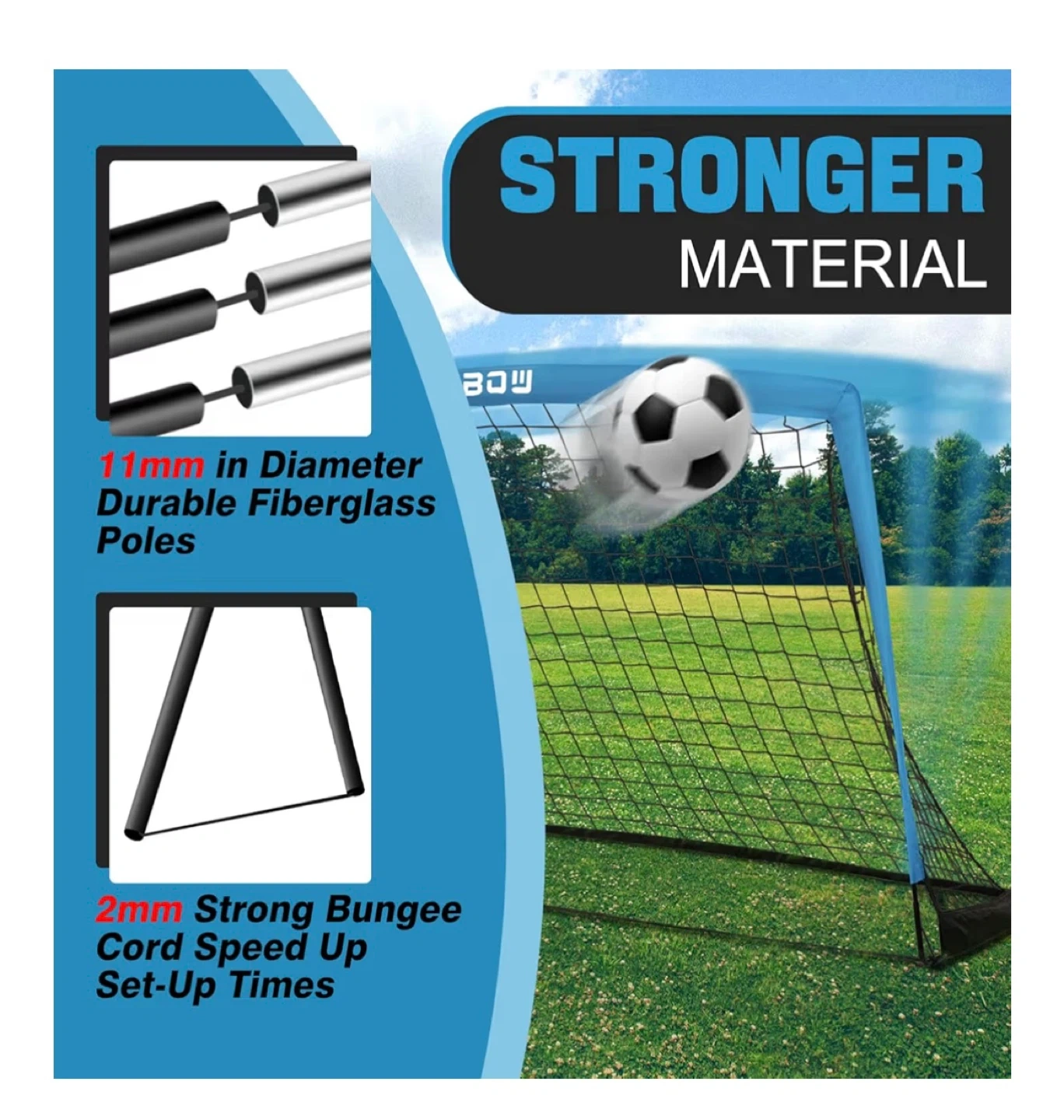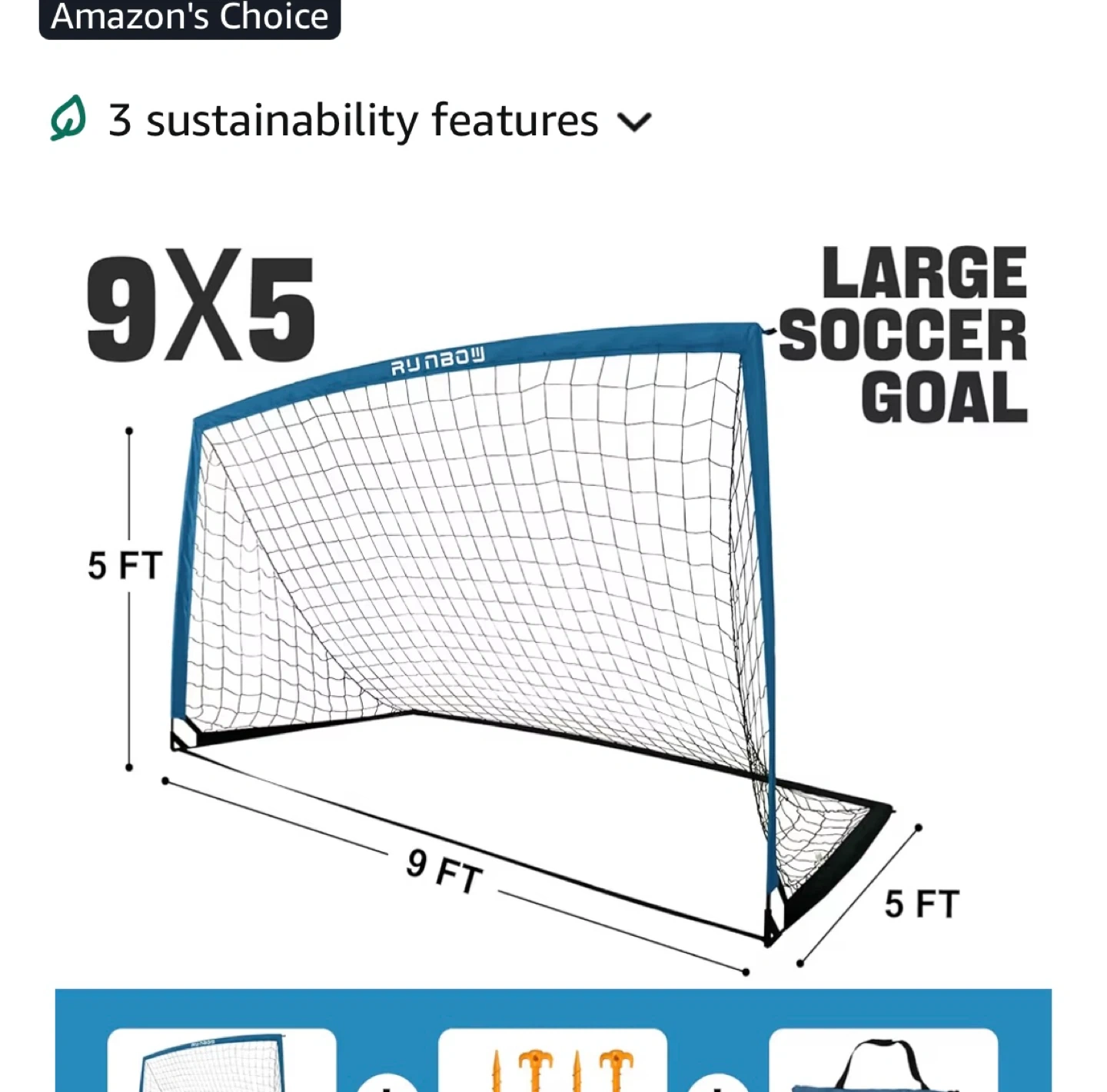 Selling a RUNBOW 9x5ft soccer goal. Features durable fiberglass poles and a 420D Oxford cloth net. Comes with a carry bag for easy transport. Great for practice!