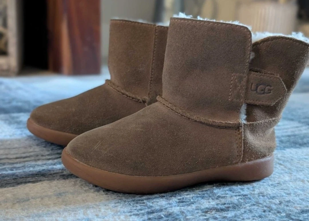 Selling a pair of UGG Australia brown suede boots with cozy sheepskin lining. Toddler size 7. Perfect for keeping little feet warm this season!