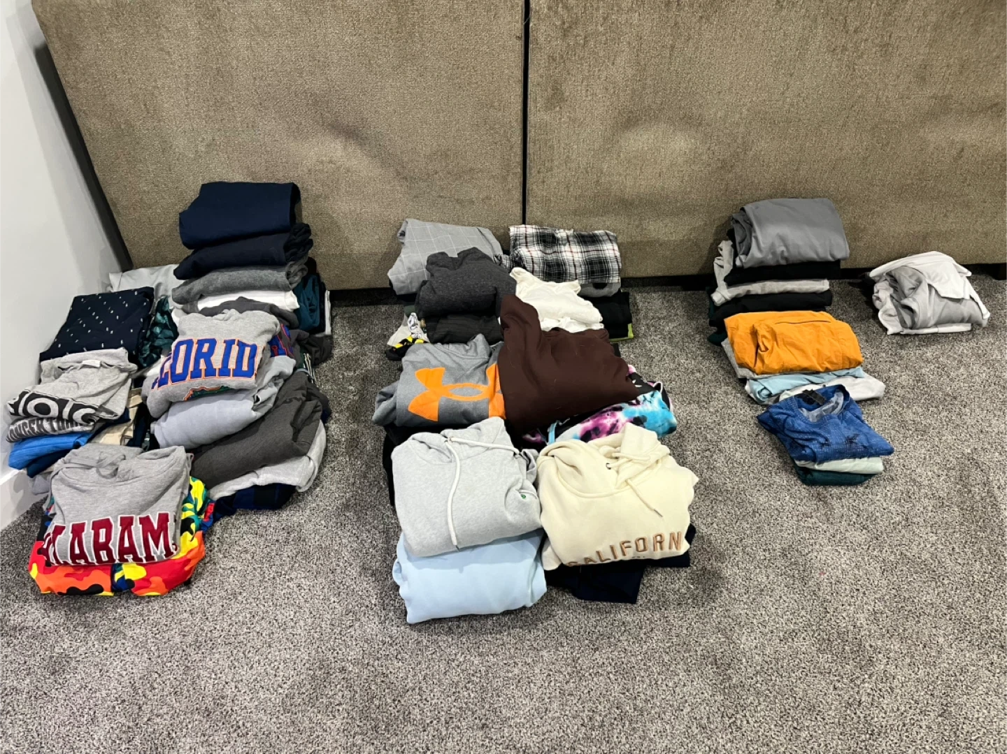 Selling men's small/medium shirts,hoodies,sweaters, shorts and pants. Includes brands like Lululemon,Under Armour, Nike and graphic print options. Variety of colours and styles available. Great for layering this season! $10-$20 each item