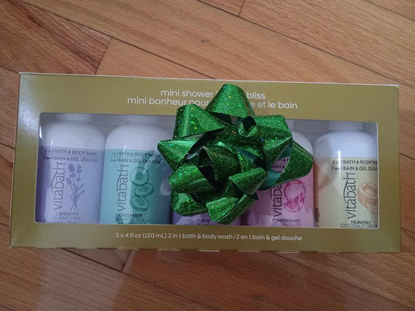 Selling a Vitabath Mini Shower Bliss 5-piece bath and body wash set. Includes Lavender Chamomile, Cucumber & White Tea, Black Raspberry, Pomegranate Bellini Blush, and Heavenly Coconut Cream scents. Each bottle is 4 fl oz (120 mL). A nice gift set!