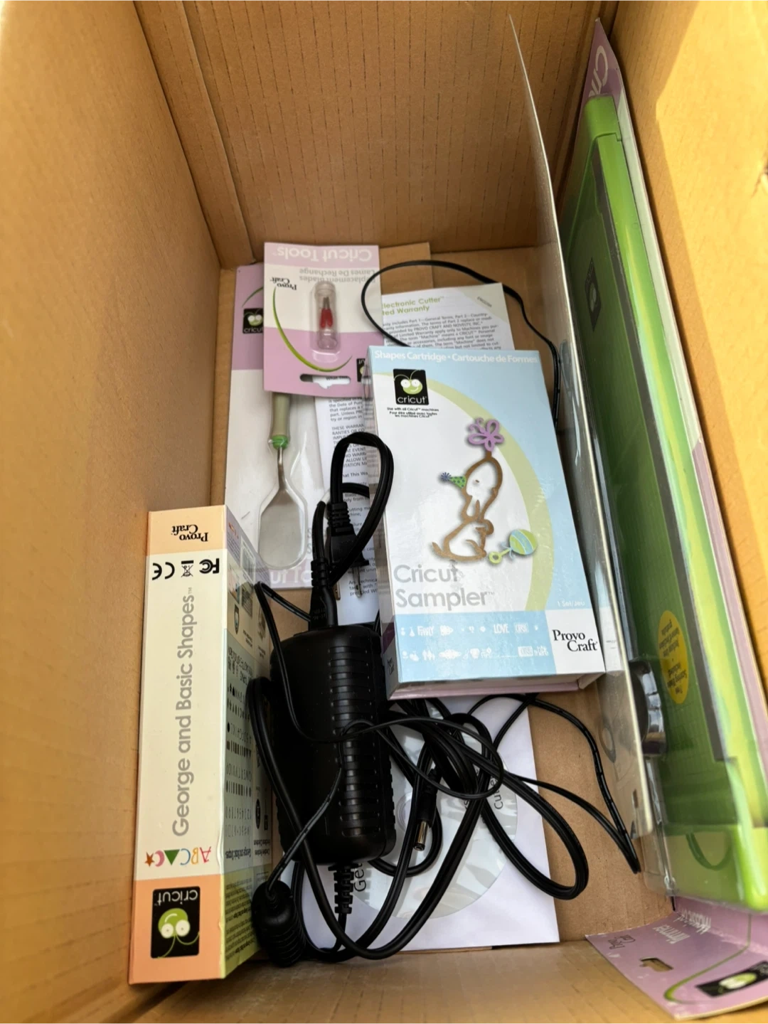 Selling a Cricut George & Basic Shapes personal electronic cutter. This unit comes with a Cricut Sampler pack and power cord.