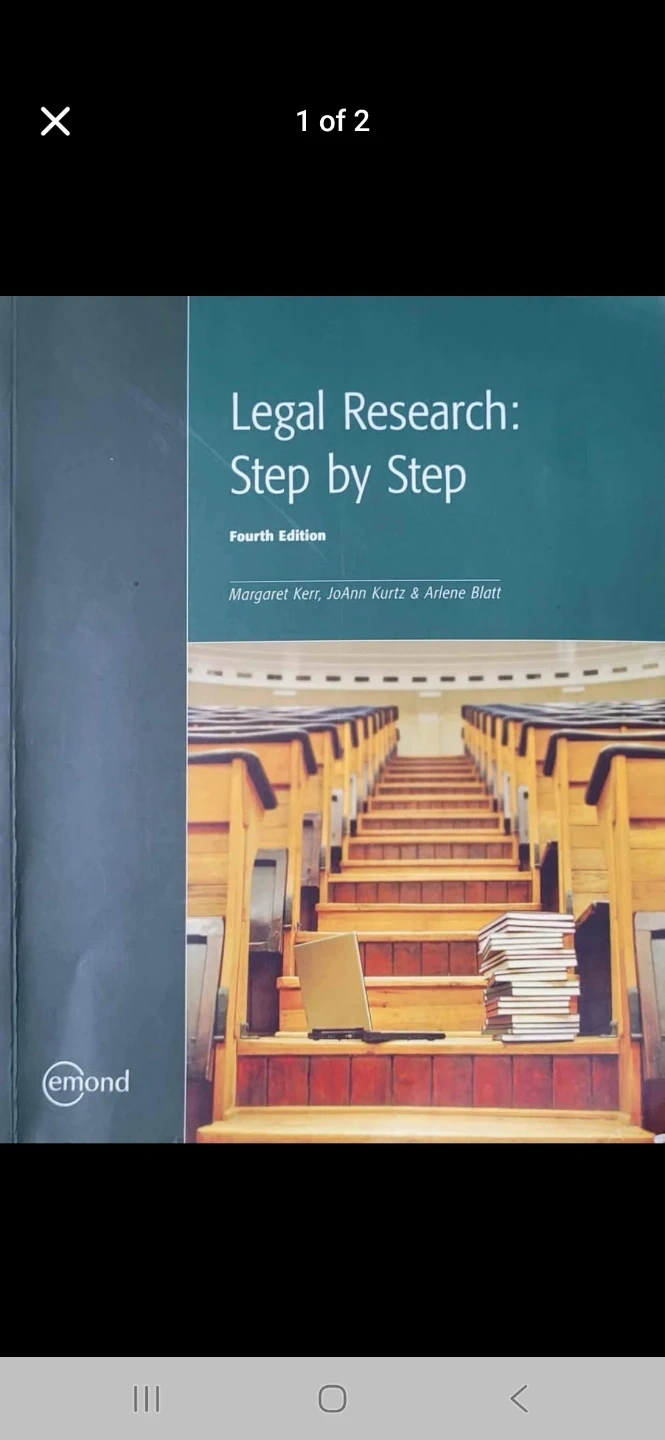 Buy & SellParalegal BookParalegal Book$20 Fourth Edition of Legal Research: Step by Step by Margaret Kerr, JoAnn Kurtz & Arlene Blatt. ConditionGoodWHERE TO MEETEast YorkView MapSELLERRumana ZamanO'connor Parkview150 reviews0 chats·1 favorites·2 viewsSEND CHAT TO SELLERHi Rumana Zaman! I’m interested in your listing.Hi Rumana Zaman! I’m interested in your listing.Get the Karrot app to chatSign In to chat