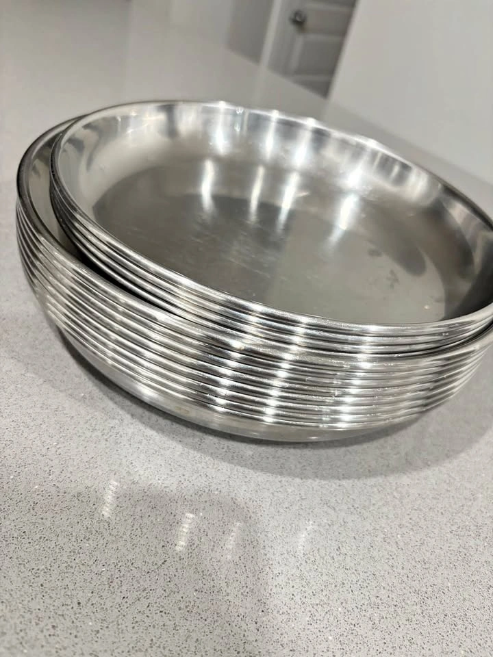Stainless Steel Plates – Set of 13 (8 Large + 5 Medium)