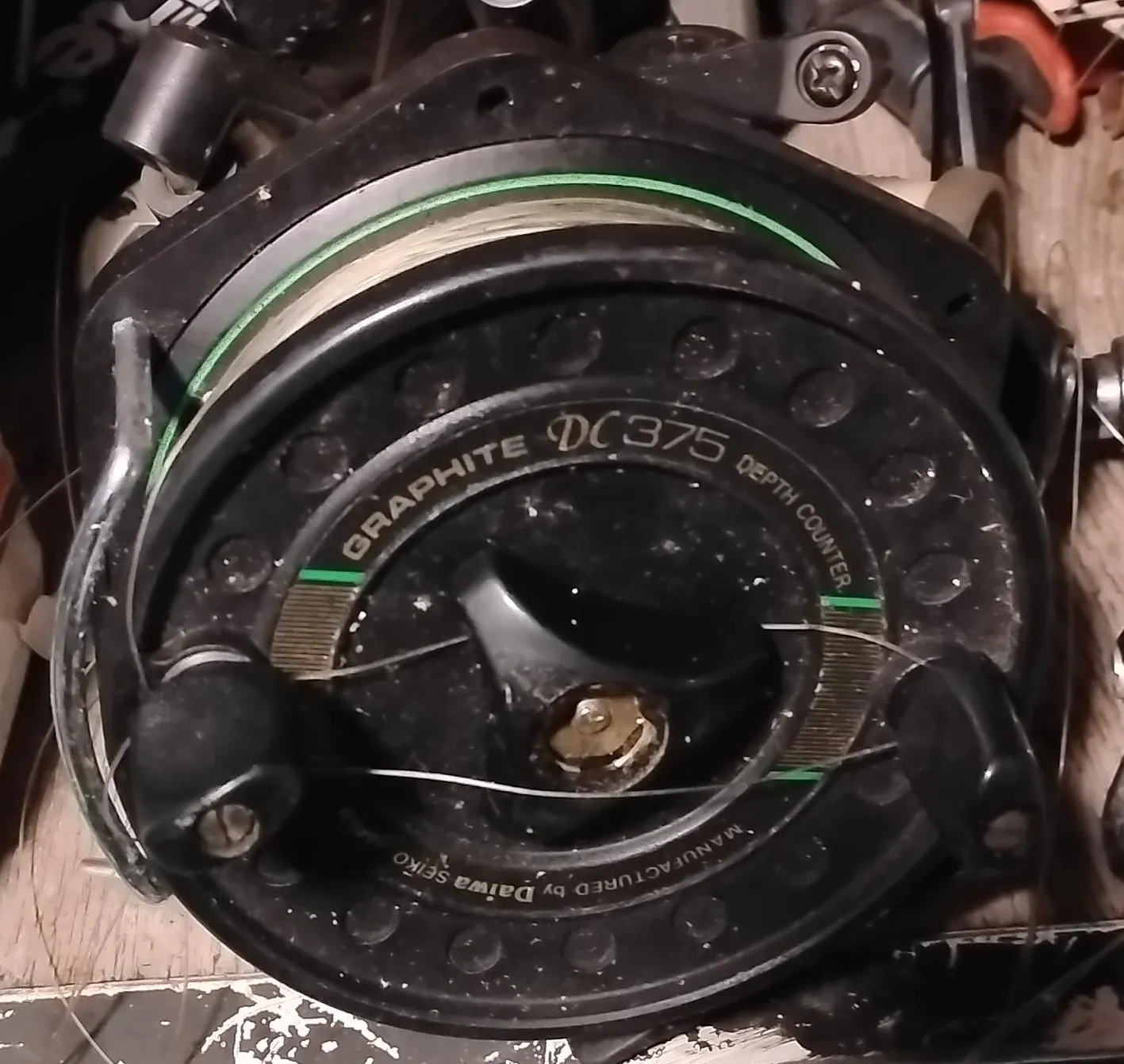 Selling a Daiwa Seiko Graphite DC375 fishing reel with a depth counter. The reel is black and appears to be made of graphite. This is a great reel for any angler looking for reliable performance. Get it now!