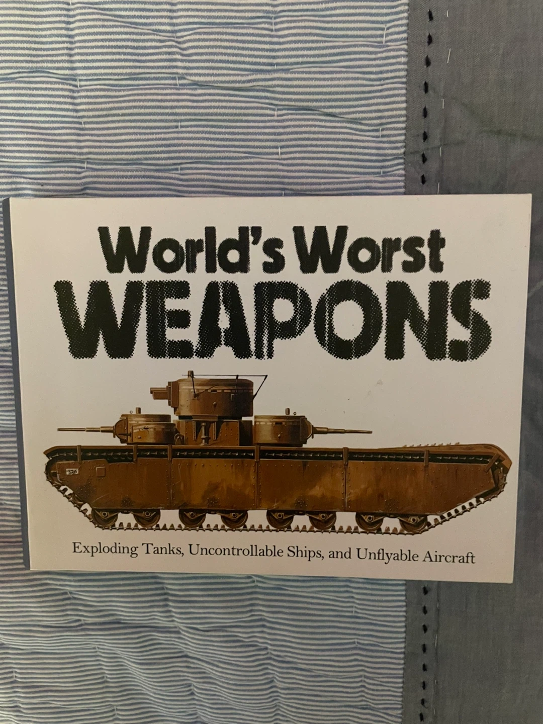 Selling World's Worst Weapons book. It covers exploding tanks, uncontrollable ships, and unflyable aircraft. A fascinating read for military history buffs!