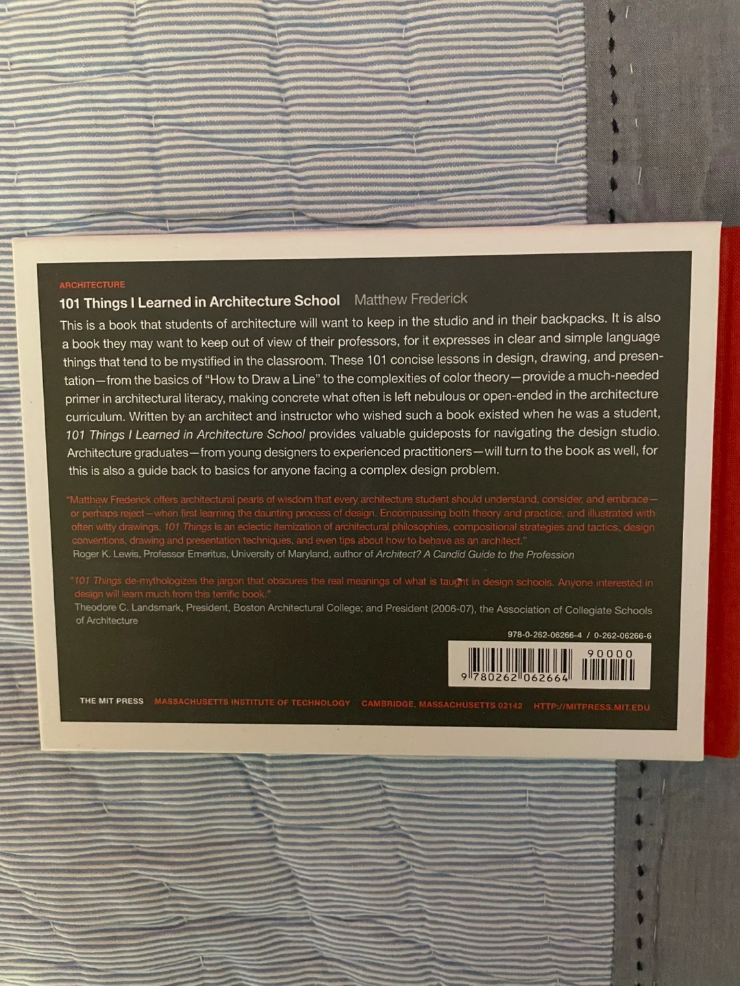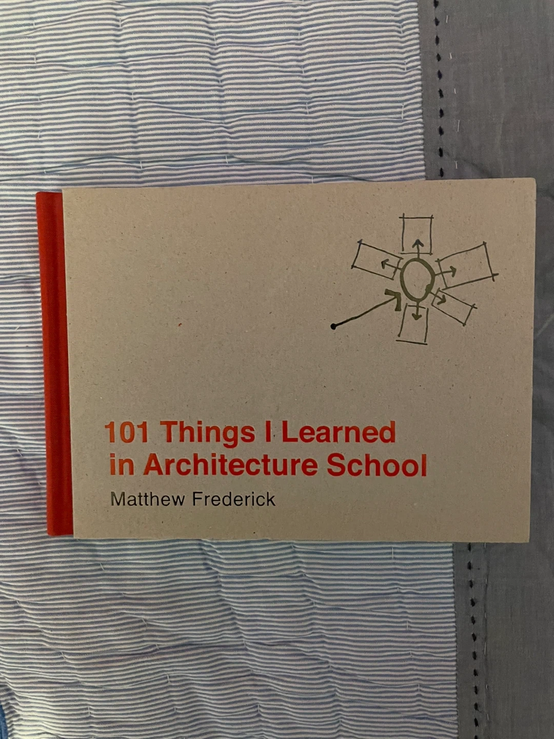 Selling the book "101 Things I Learned in Architecture School" by Matthew Frederick. This book offers concise lessons in design, drawing, and presentation. A great guide for anyone facing a complex design problem.