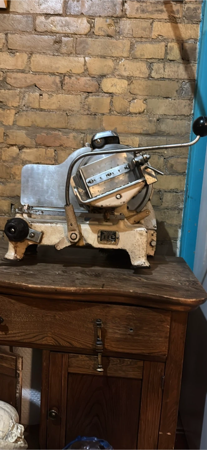 Selling a vintage Berkel meat slicer. This commercial slicer is built to last with durable metal construction. It features a large, sharp blade for efficient slicing. A great piece for a butcher shop or enthusiast!