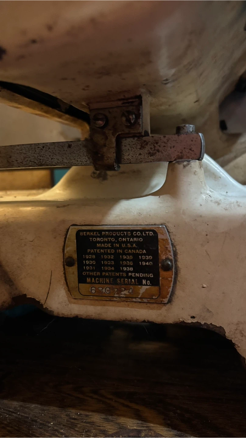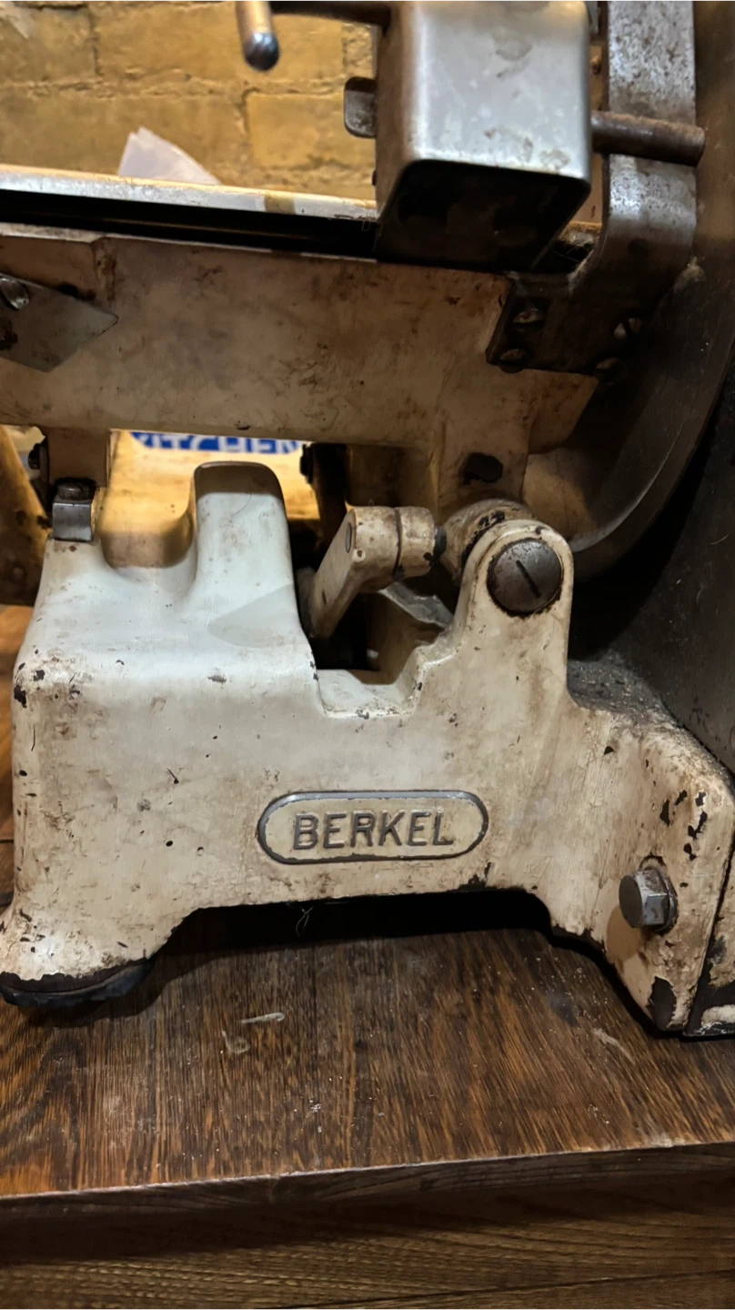 Selling a vintage Berkel meat slicer. This commercial slicer is built to last with durable metal construction. It features a large, sharp blade for efficient slicing. A great piece for a butcher shop or enthusiast!