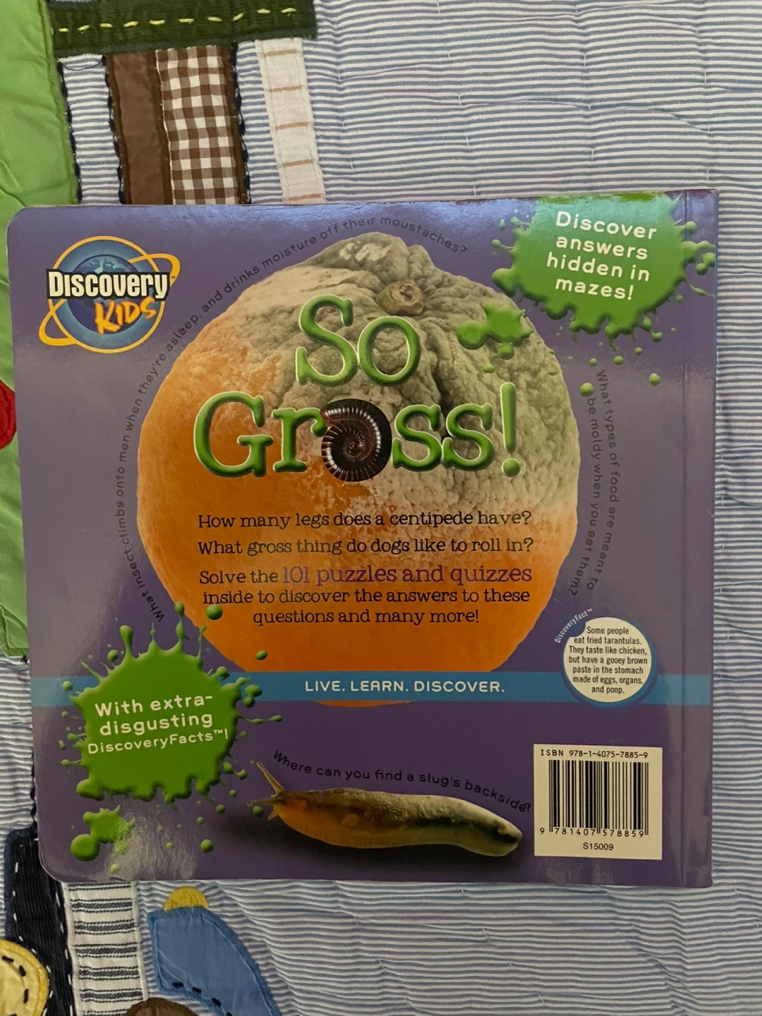 Selling the Discovery Kids "So Gross!" book. This book contains 101 puzzles and quizzes about grossest stuff. Learn fun and disgusting facts with extra-disgusting Discovery Facts! Solve mazes and discover answers to fascinating questions.