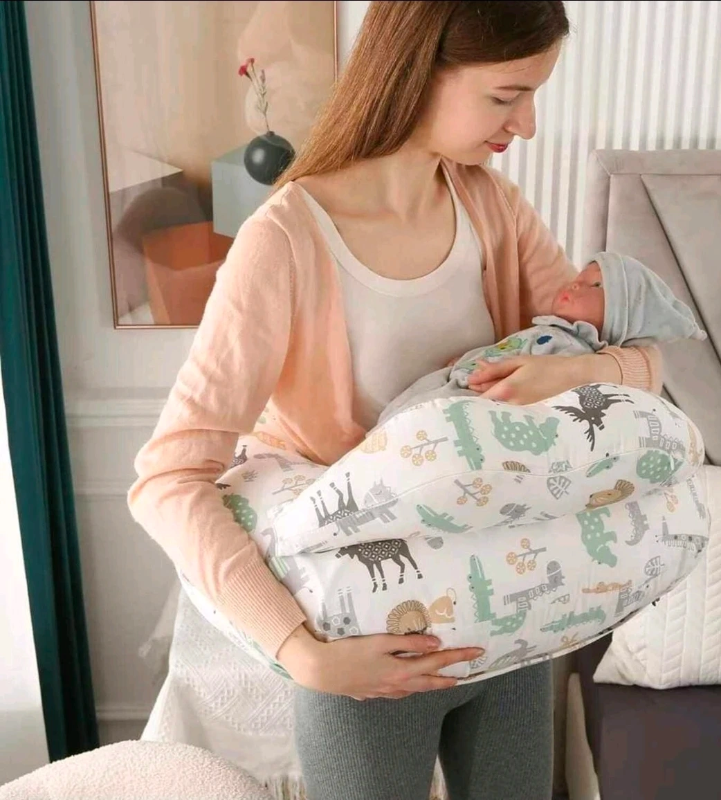 This comfy U-shaped nursing pillow features a fun animal print design, perfect for supporting you and your baby during feeding time. It's made with soft, durable fabric and includes a convenient strap for easy carrying. Great for new parents!