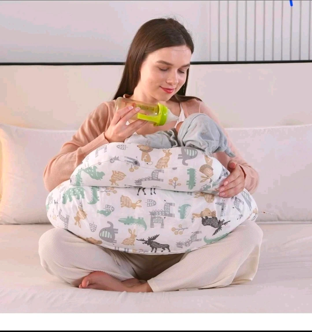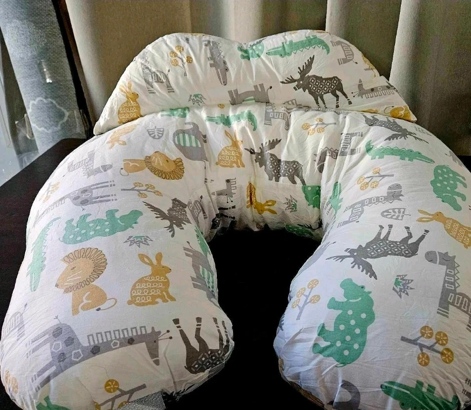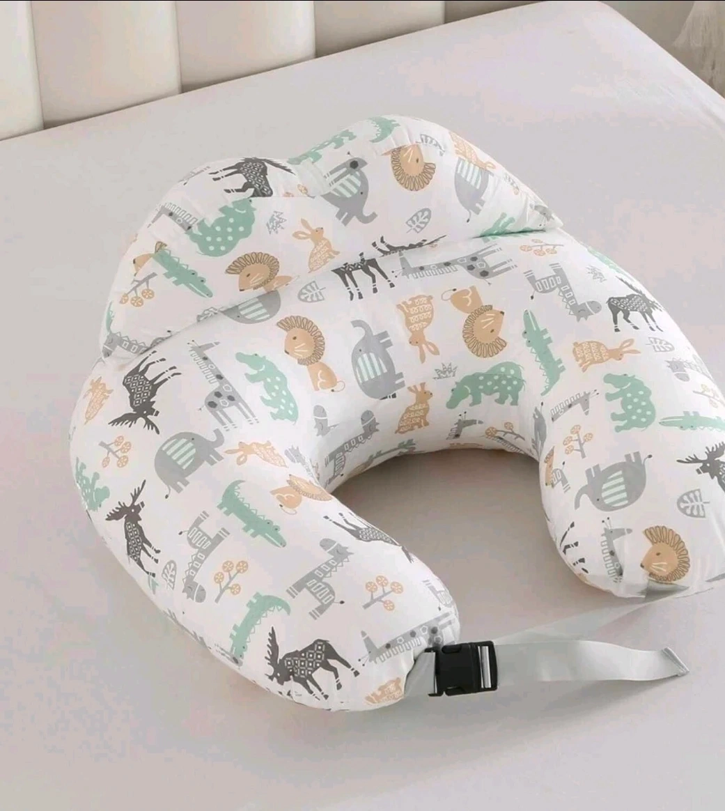 This comfy U-shaped nursing pillow features a fun animal print design, perfect for supporting you and your baby during feeding time. It's made with soft, durable fabric and includes a convenient strap for easy carrying. Great for new parents!