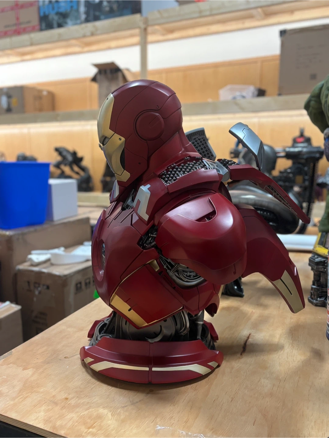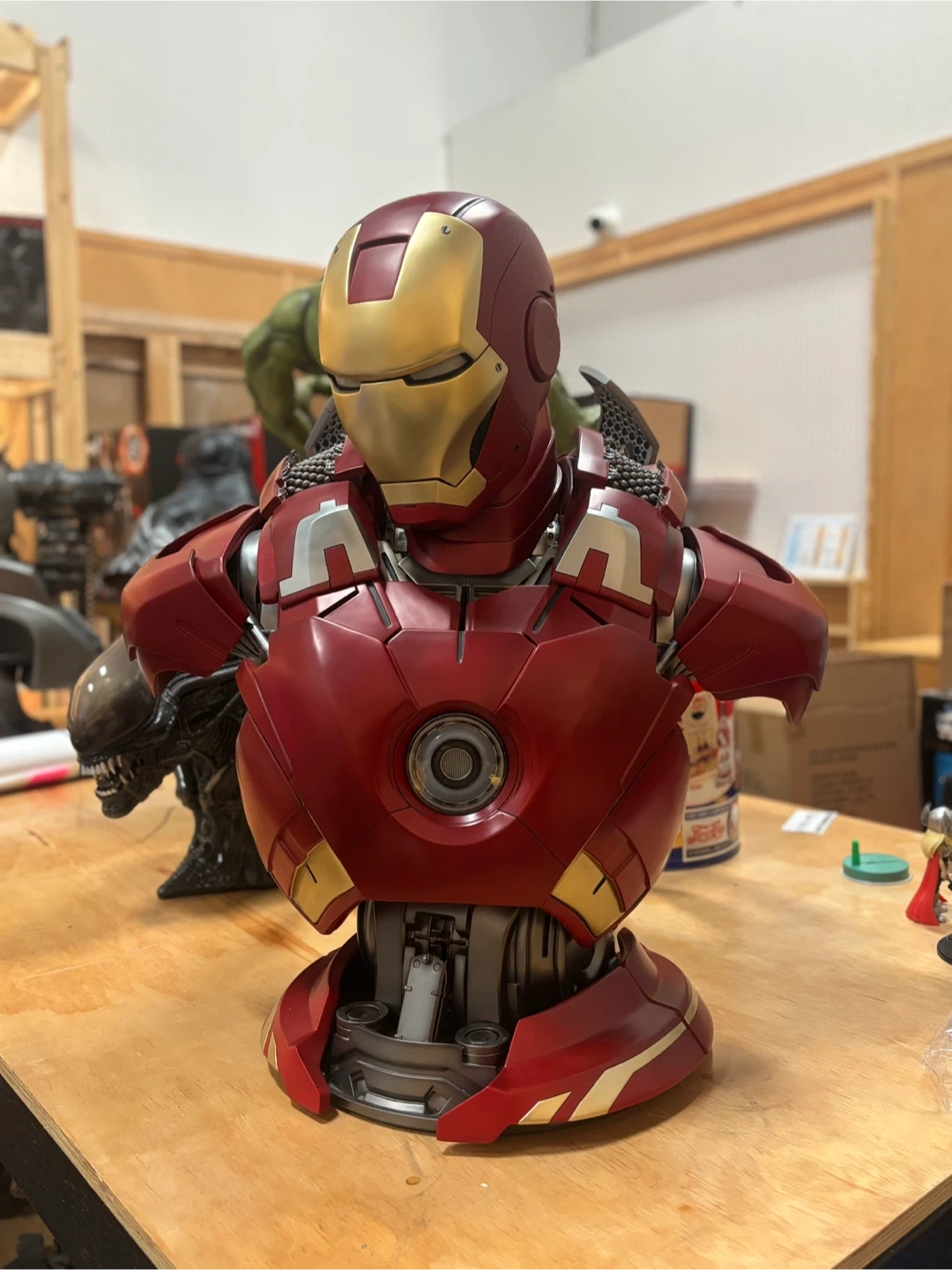 Amazing life size Iron Man Mark VII bust statue with detachable light arc reactor.