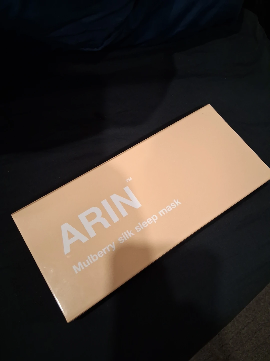 This is the ARIN Mulberry Silk Sleep Mask. It's made from 100% mulberry silk for a deep, restorative sleep. Comes in its original box with all components. A great addition to your skincare routine!