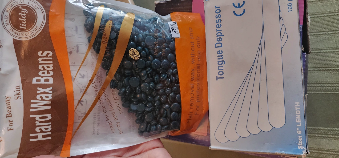 Includes Pro-Wax100 professional warmer, hard wax beans, tongue depressors, and wooden applicators. Purple warmer, new in box. Wax beans in unopened package. Many applicators. Perfect for home waxing.