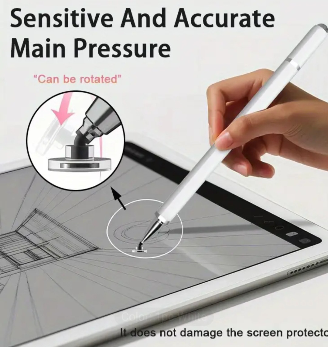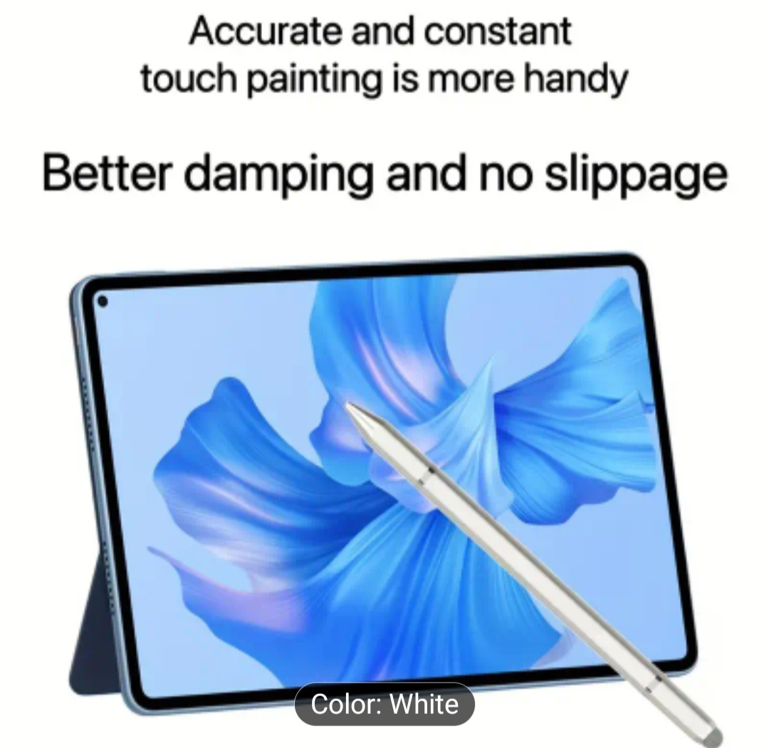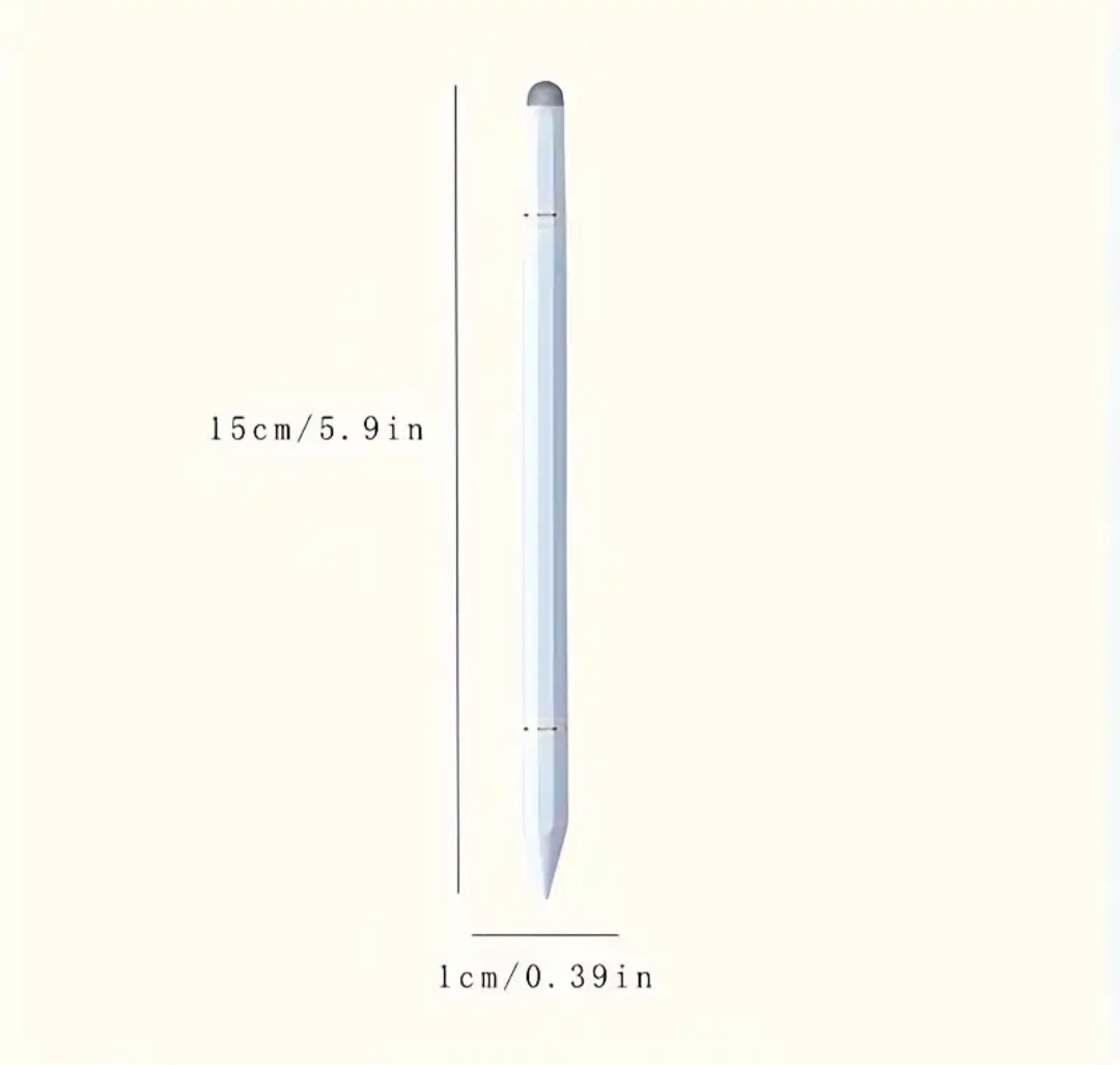 This white stylus pen is perfect for touch screen devices. It has accurate and constant touch painting, better damping, and no slippage. It's sensitive and accurate to main pressure and will not damage the screen protector. It measures 15 cm / 5.9 in in length and 1 cm / 0.39 in in diameter