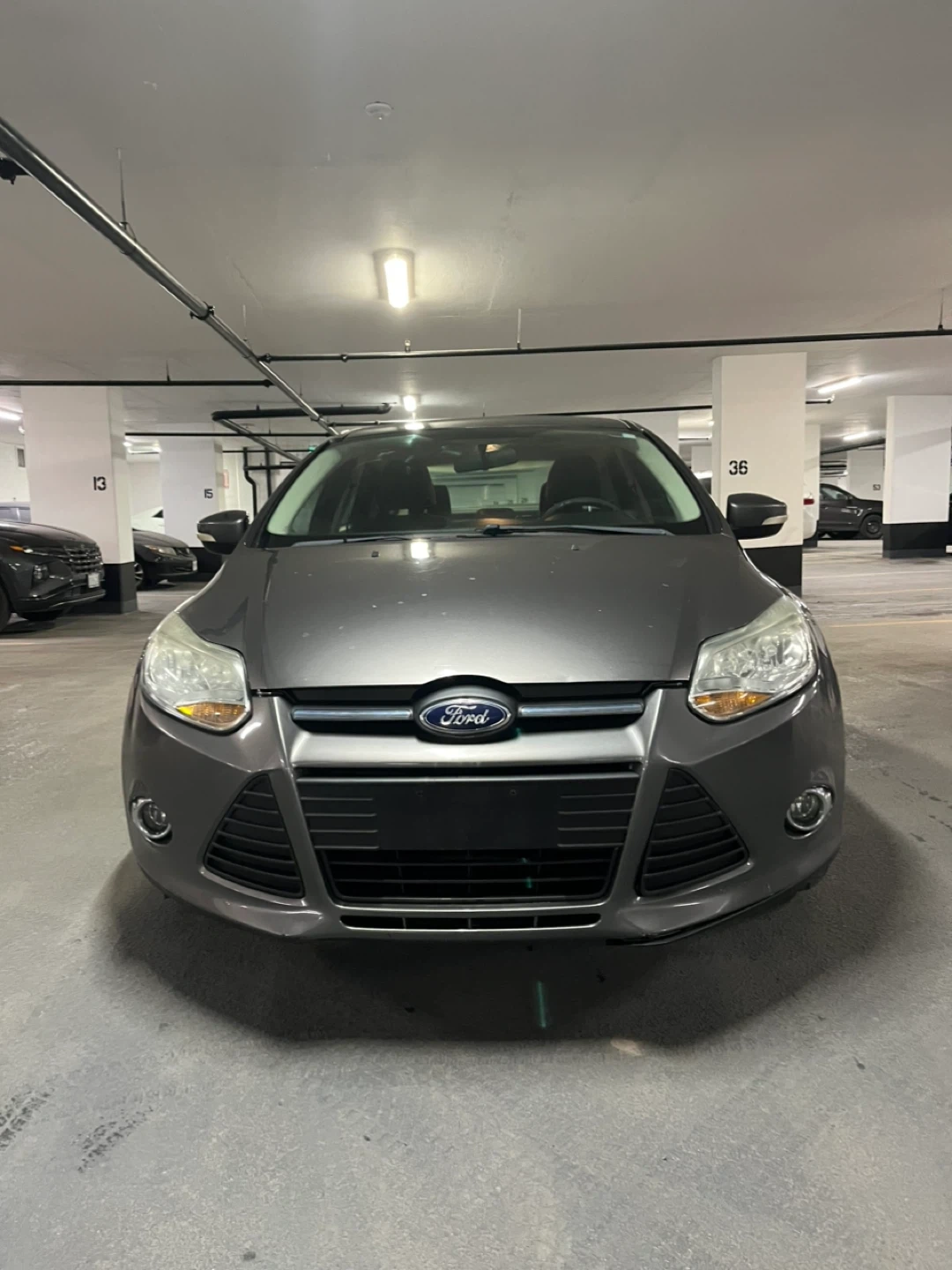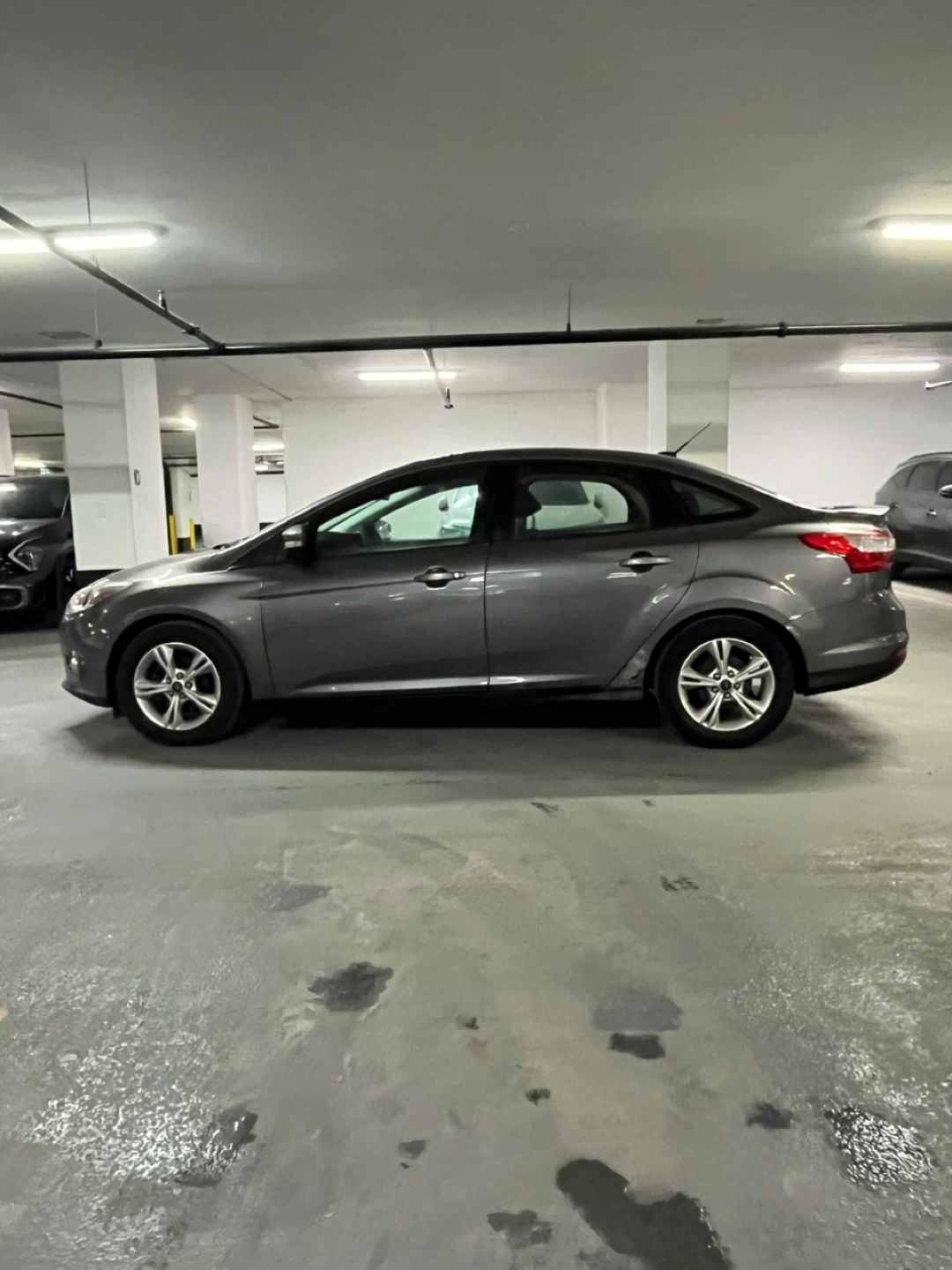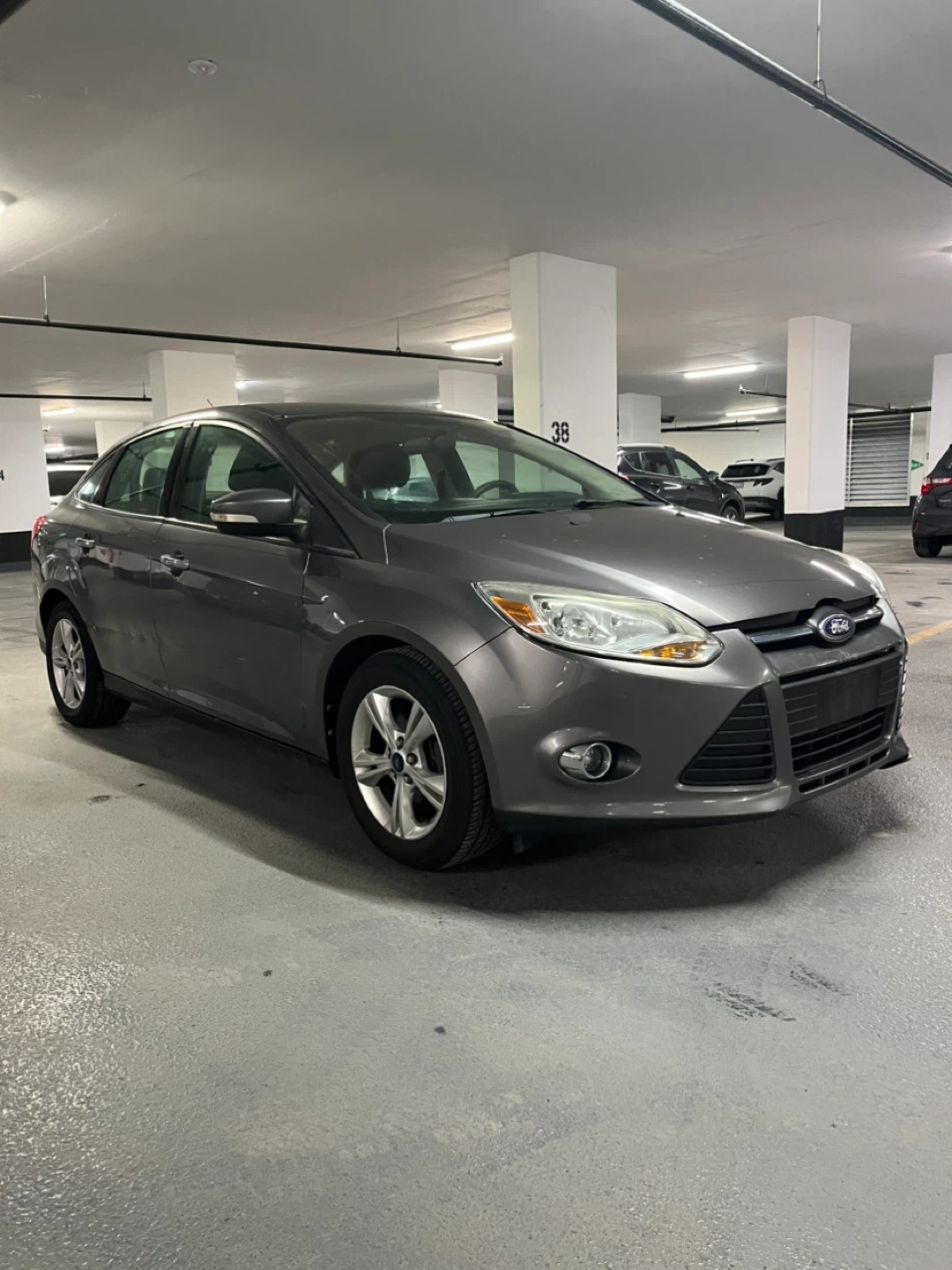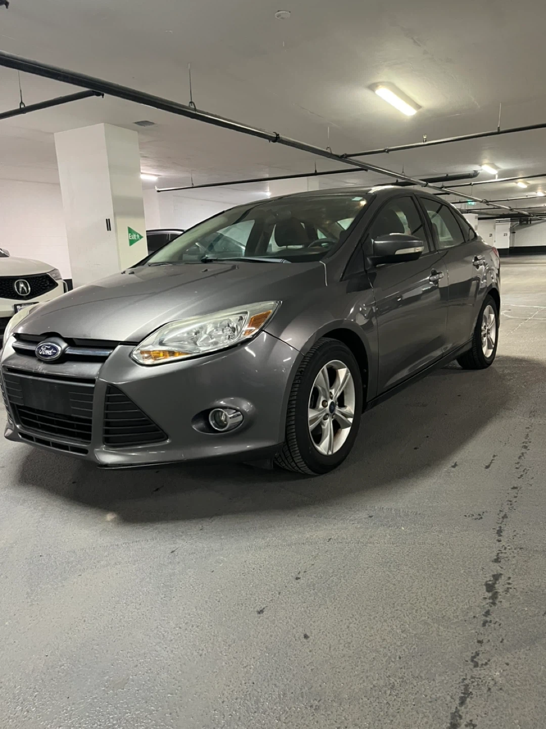 This is a grey 2013 Ford Focus SE sedan. It's a four-door model. Great for commuting or as a first car!
