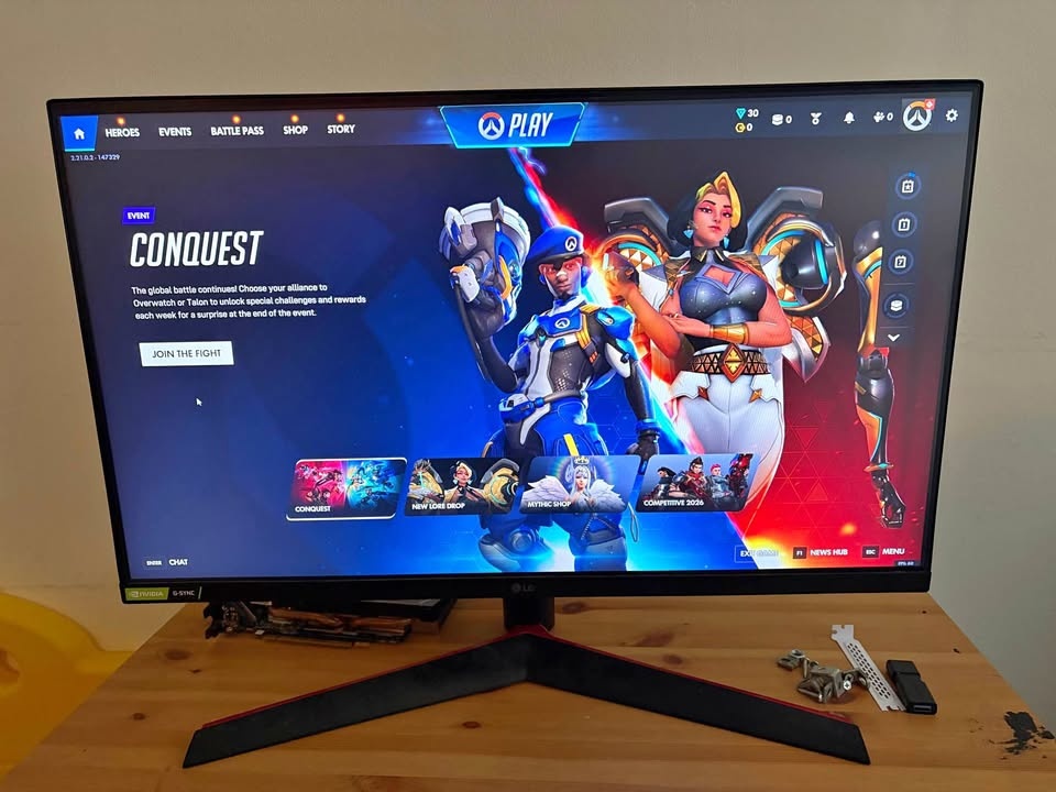 LG Ultragear 27” FHD IPS 1ms 240Hz HDR Monitor with Nvidia G-SYNC. Comes with added blue light screen filter for eye protection.