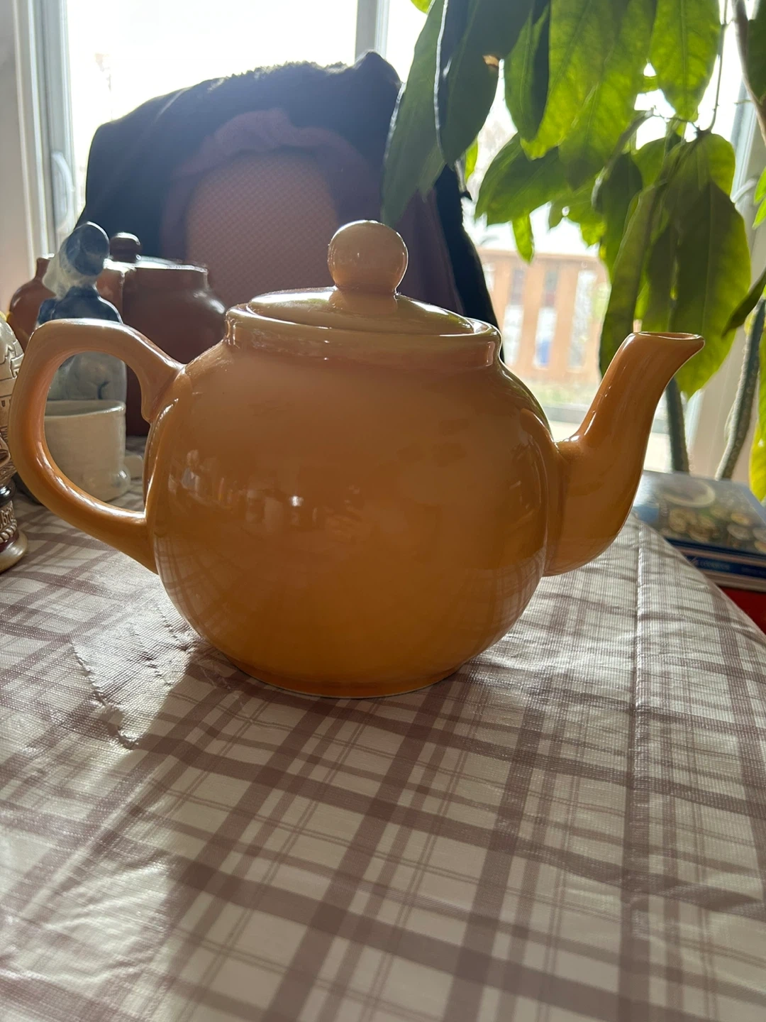 Selling a lovely yellow teapot in a vintage style! It's in great condition and would be perfect for tea time or as a decorative piece in your kitchen. It's a sunny yellow colour, and comes with a matching lid.