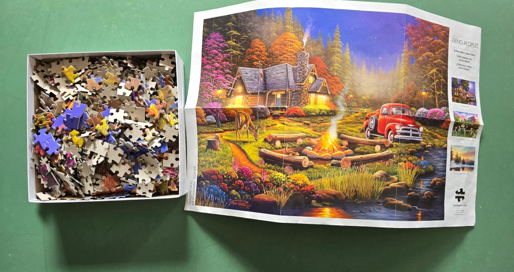 Selling a 1000-piece puzzle by Buffalo, titled "Art of Geno Peoples The Woodsmen"! The box is included and all the pieces are there (see photo as reference)