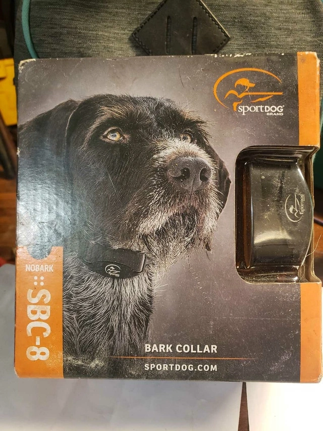 Get your SportDOG Brand SBC-8 NoBark Collar, designed to humanely and effectively stop your dog's nuisance barking! This collar is in excellent condition, ensuring your furry friend gets the training they need without any discomfort. It features multiple programmable modes and automatic safety shut-off. Key features include: Advanced Bark-Sensing Technology, 3 Programmable Modes (Automatic, Progressive Correction, User-Selectable), 7 levels of static stimulation, Automatic Safety Shut-Off, Waterproof and Submersible. Cash and cashless payments accepted.