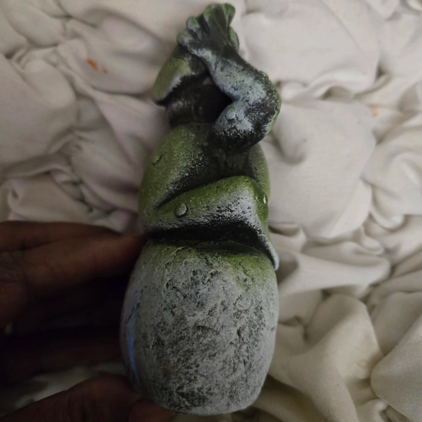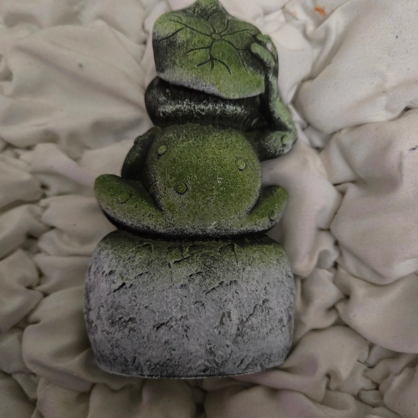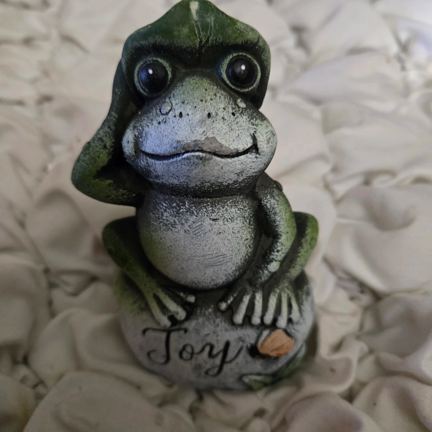 This cute frog garden statue is ready to bring some joy to your space! It's a fun decorative piece for your lawn or garden. The statue features the word 'Joy'. Originally bought for $3.