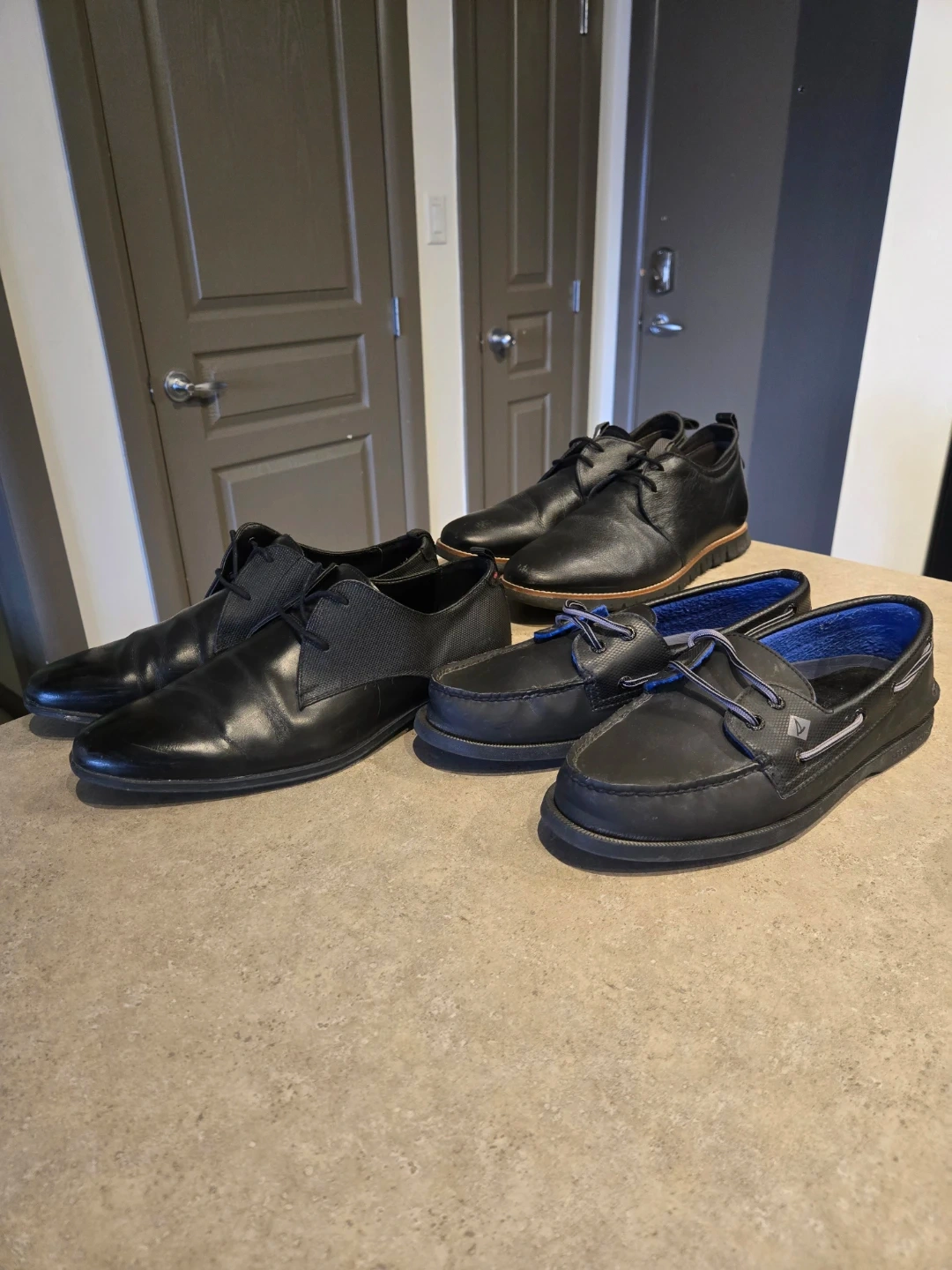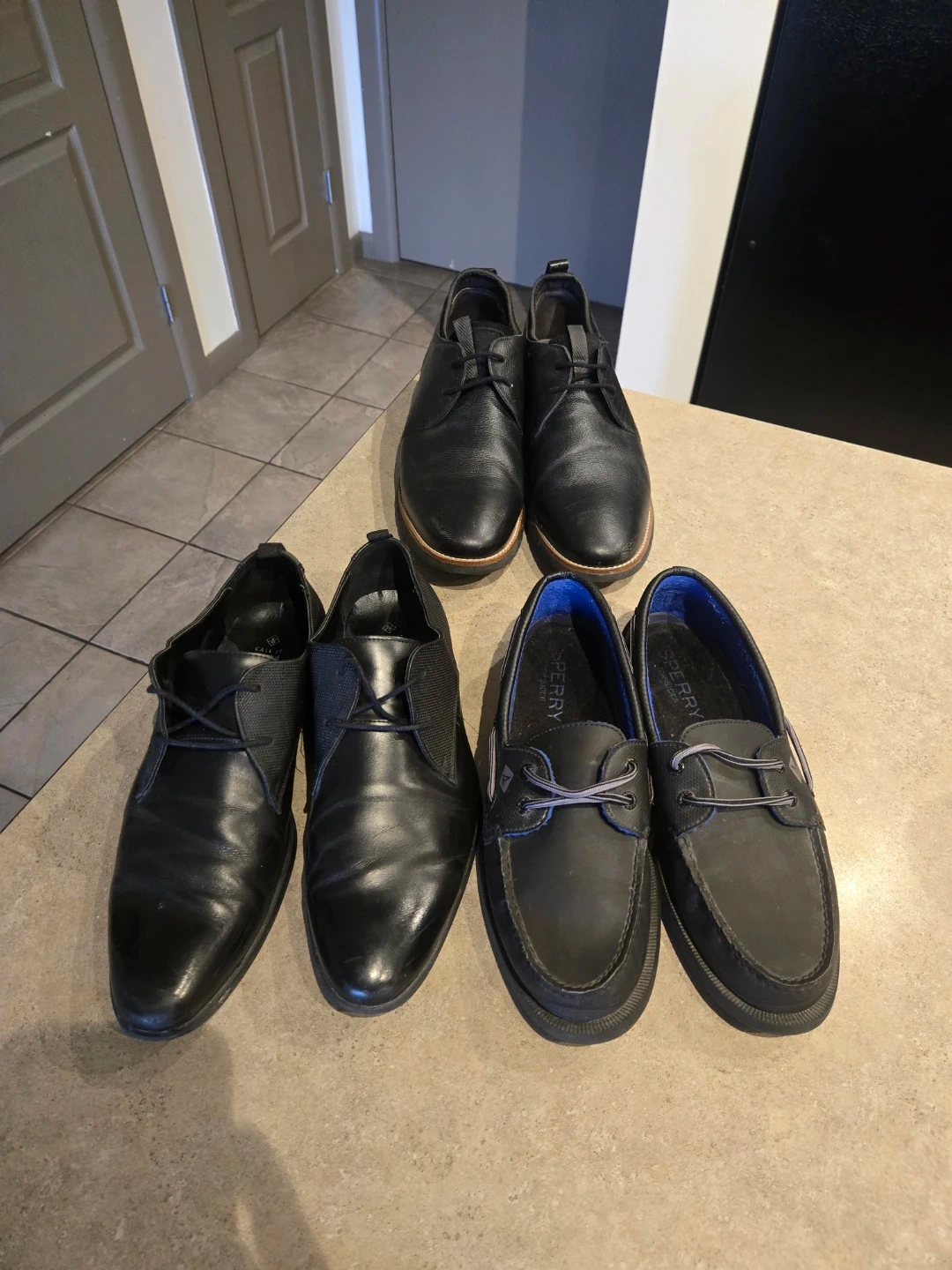 3 sets of leather shoes.