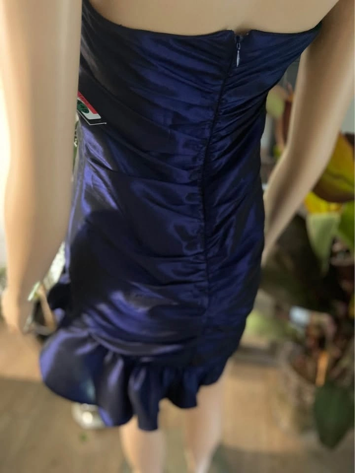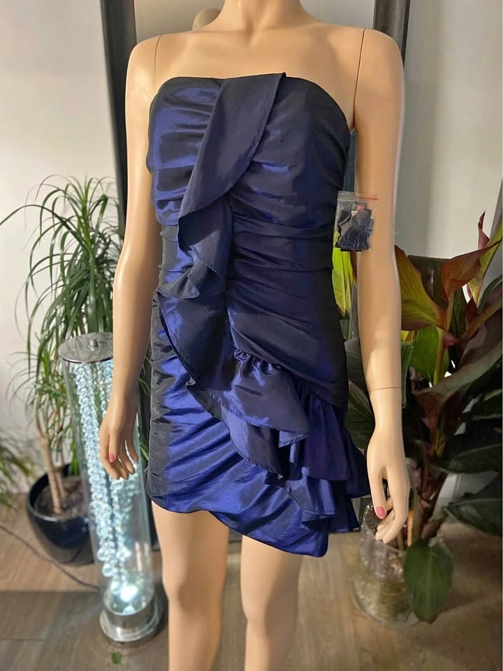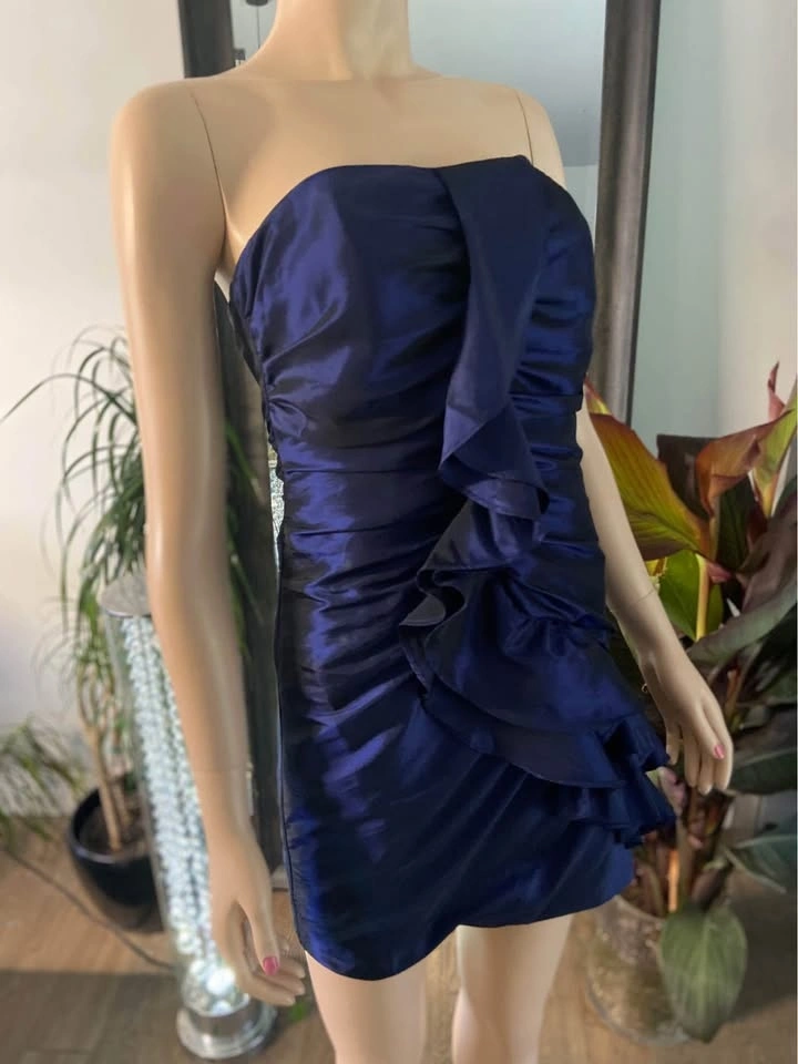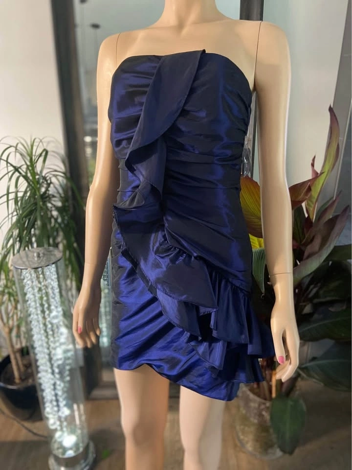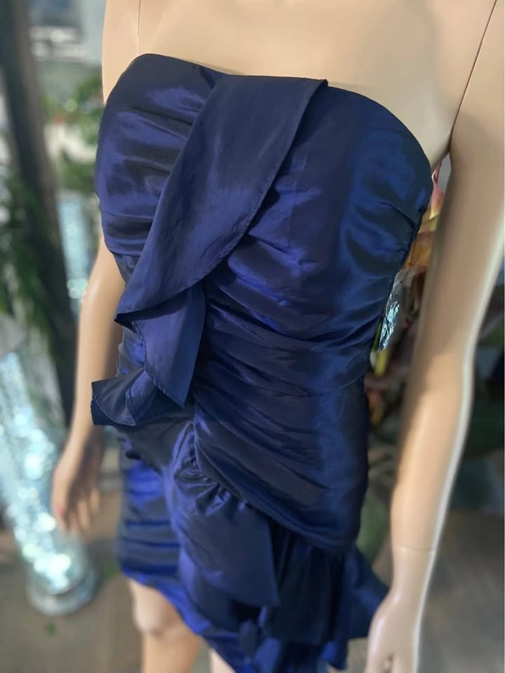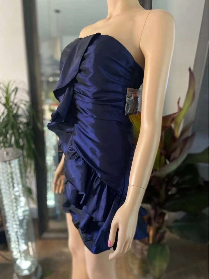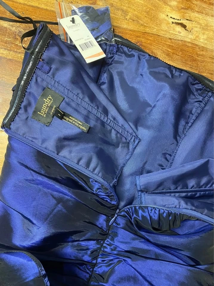 NWT: Laundry Blue Ruched Ruffled Front Convertible Strap Satin Cocktail Evening Dress Sz 2, 4, 8, 10
