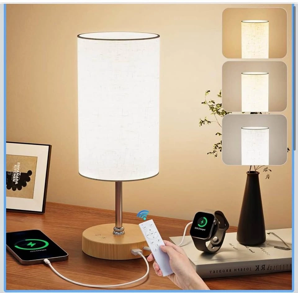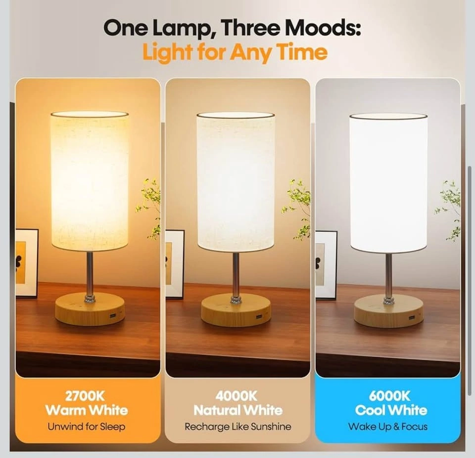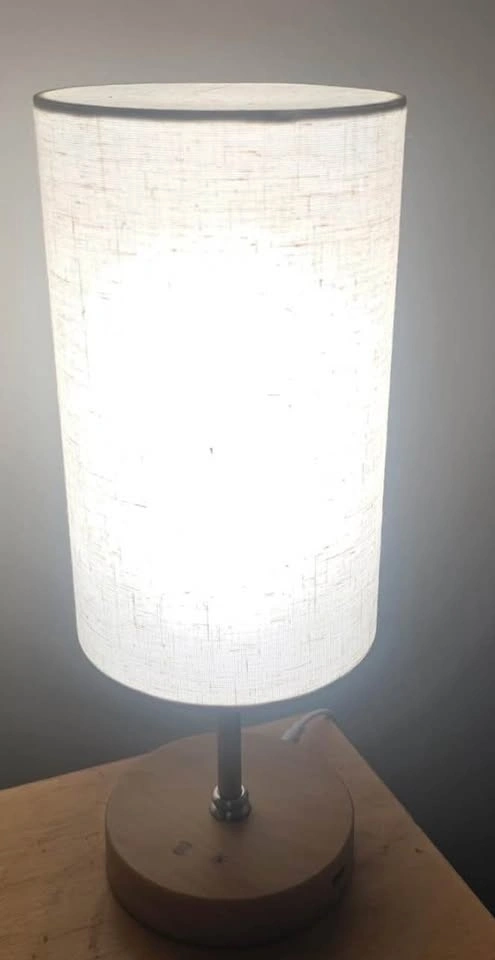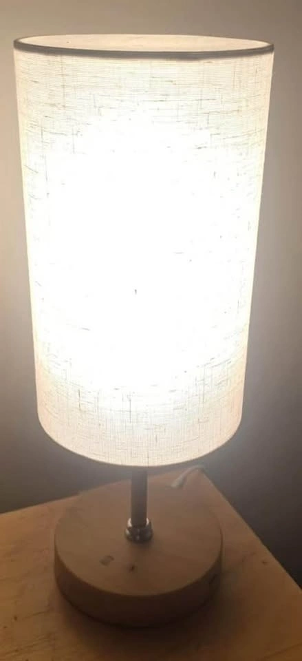 Bright table lamp with 3 color settings: warm white, natural white, and cool white. Has a USB port to charge your devices. Can be controlled with a remote. Measures 8.7 inches tall with a 5.1-inch diameter shade.