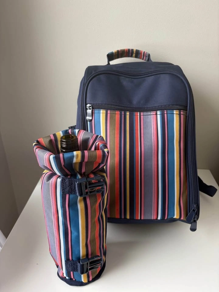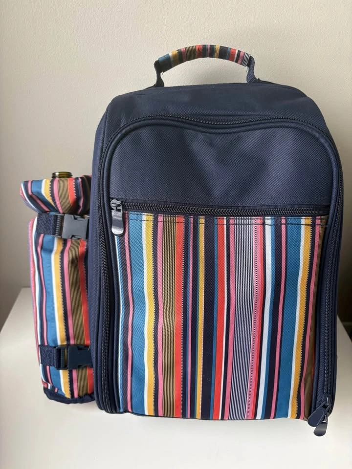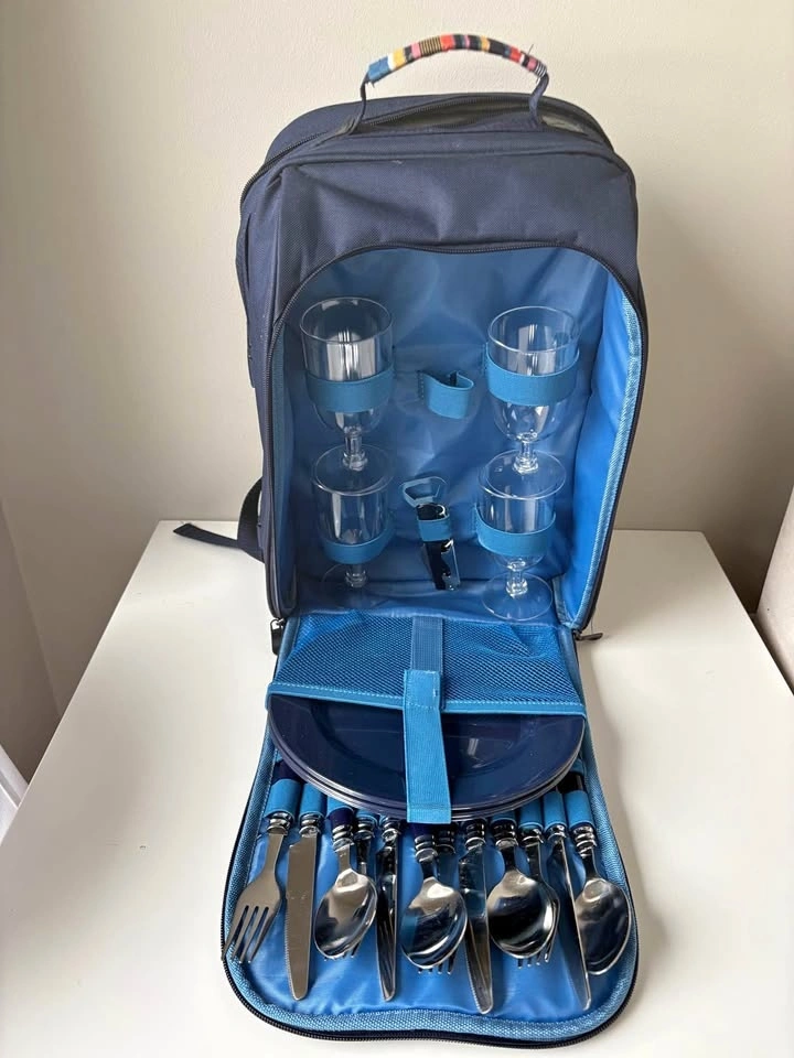 Complete 4-Person Picnic Backpack – Excellent Condition (Never used). Upgrade your outdoor dates or family outings with this all-in-one picnic rucksack. It’s designed to keep your hands free while carrying everything you need for a meal for four. Full Dining Set: Includes 4 plates, 4 wine glasses, 4 sets of stainless steel cutlery, a bottle opener and cutting board. Insulated Compartment: Large thermal-lined section to keep food and drinks cold for hours. Detachable Wine Cooler: Insulated side pocket specifically for a wine or water bottle. Comfortable: Padded adjustable shoulder straps for easy carrying. Perfect for hiking, beach days, outdoor concerts, or a thoughtful wedding/anniversary gift. From a smoke-free home. Perfect for Kelso or Rattlesnake Point outings! Great Valentine’s Day gift!