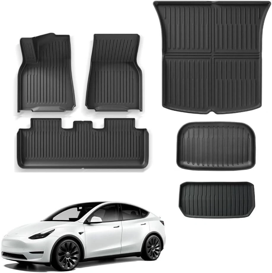 Protect your Tesla Model Y with this complete set of all-weather floor mats. They are designed for a precise fit and provide excellent protection against spills and debris. Easy to clean and durable for everyday use!