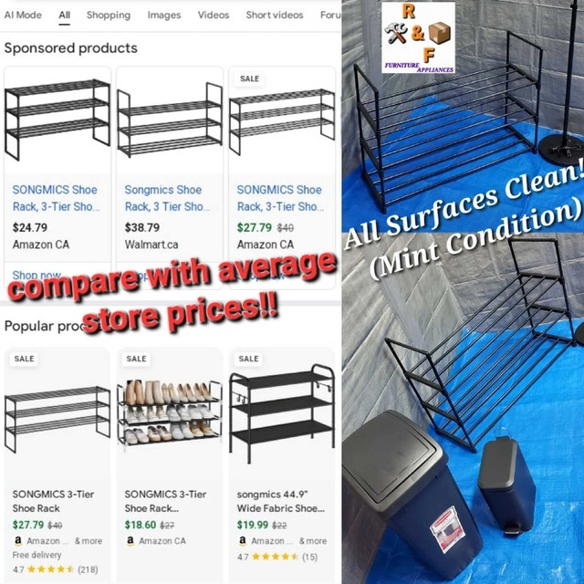 Declutter your entryway with this SONGMICS three-tier metal shoe rack, perfect for organizing up to 15 pairs of shoes. It's in excellent condition with spotless surfaces, ready to transform your space! Key features include: Accommodates 12-15 pairs of shoes, sturdy metal construction, easy assembly, and a space-saving design. Priced at $10 for a quick sale. If the ad is up, the shoe rack is available! See pictures for dimensions. Items can be inspected and tested prior to purchase. No deliveries, curbside pickup only. Located in Downtown Toronto, close to Roy Thomson Hall and TIFF. Nearest main intersection at Adelaide Street West and John Street. Free parking available.