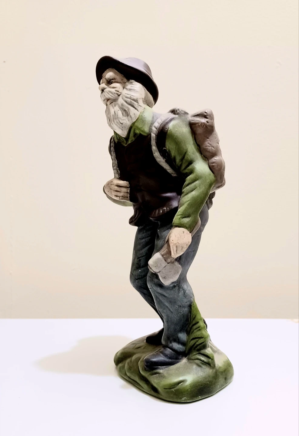 This is a Vintage, Handmade German figurine from 1981. The figurine depicts a Woodsman with a load of firewood,and holding an axe .