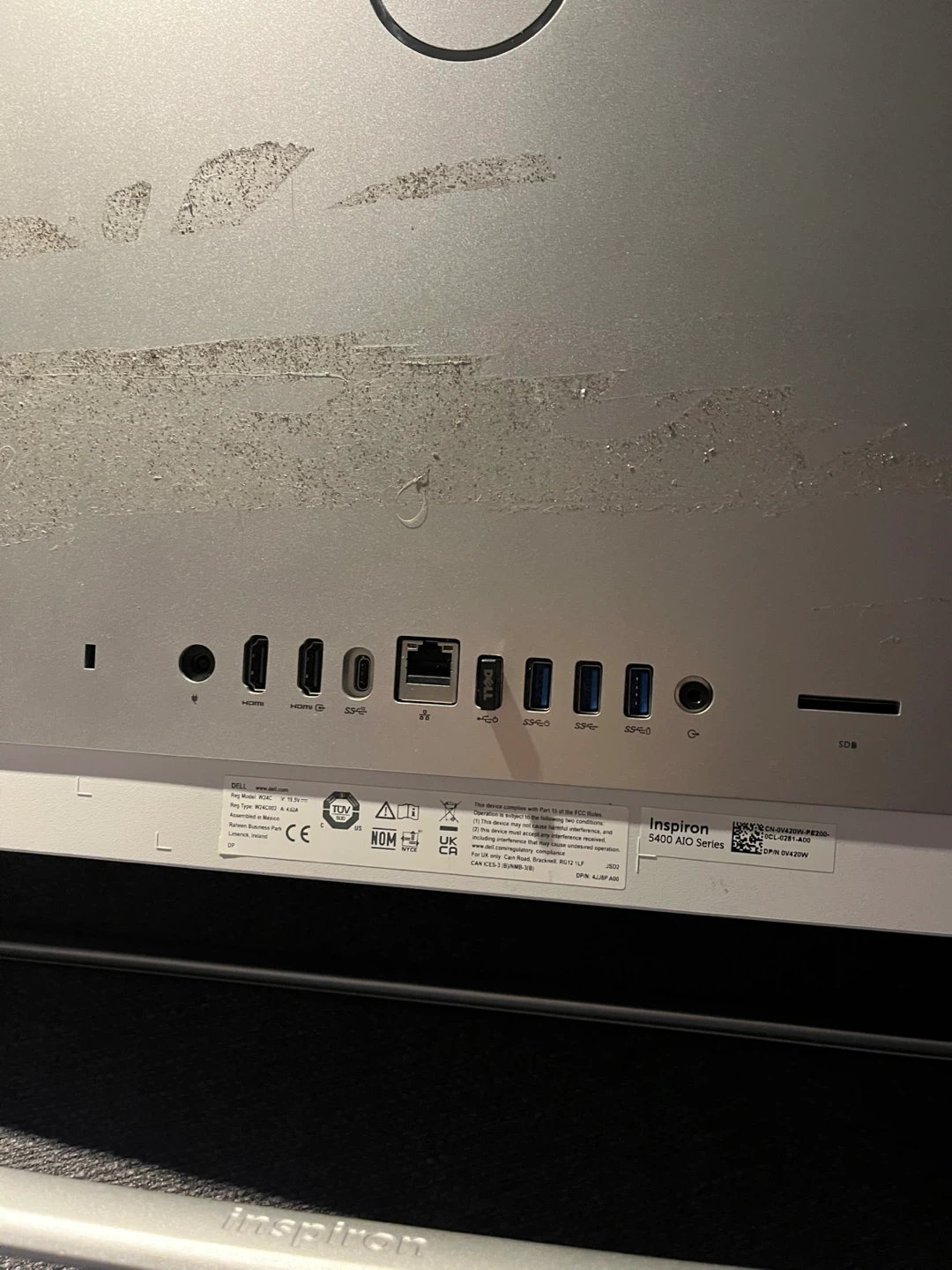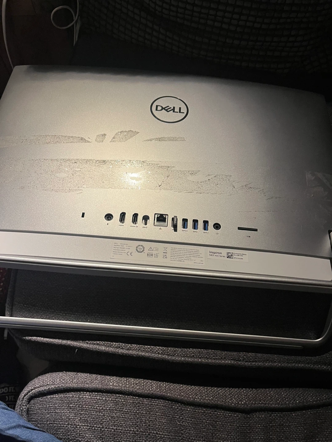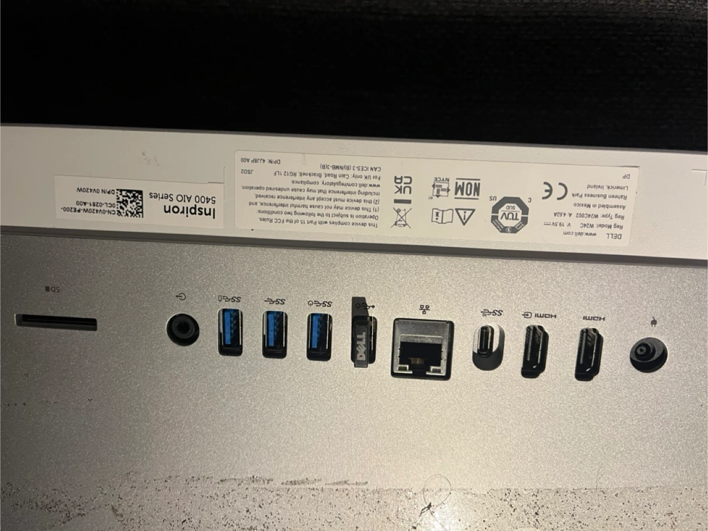 Dell Inspiron All-in-One desktop computer. Features an Intel Core i5 processor. It has multiple USB ports and an SD card reader.