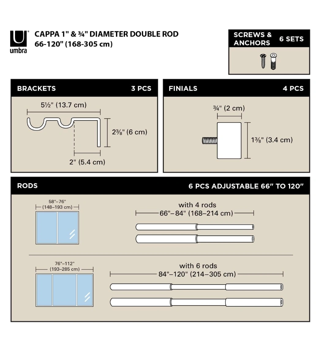 Umbra Gold CAPPA Double Extendable Curtain Rod, 66-120"