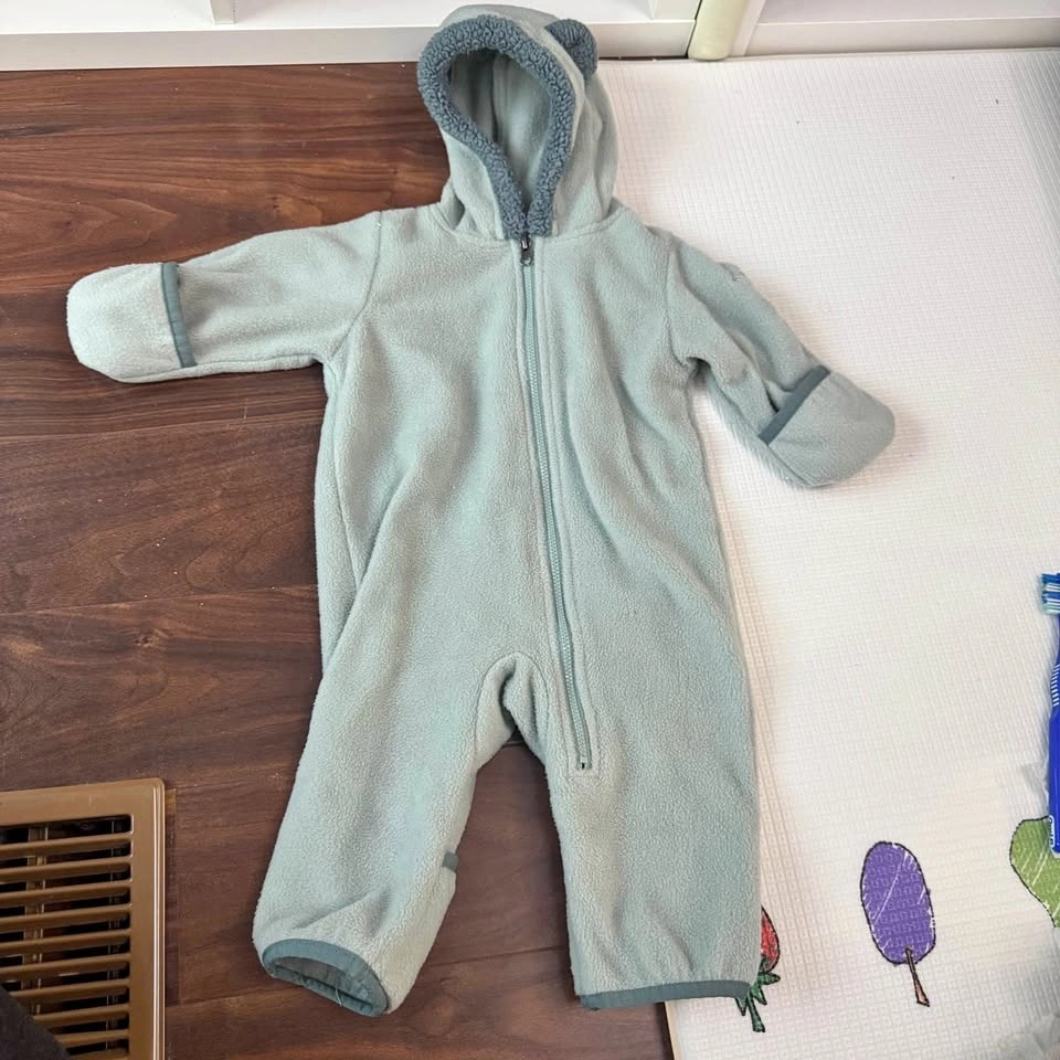 Columbia teal baby warm one piece bunting for 3-6 months. Gently used, unisex. Has a zip-up front and a hood with cute bear ears. My baby outgrew it. Pick up in Richmond Hill.
