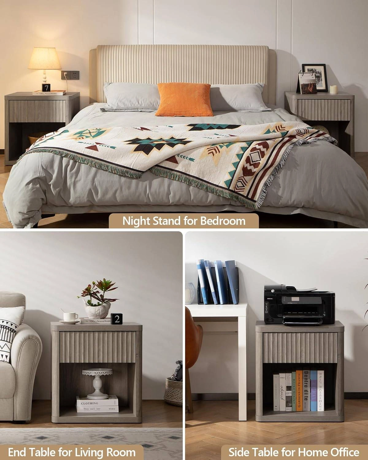 SICOTAS Fluted Nightstand with Drawer, Alder, NS1R1824/2324