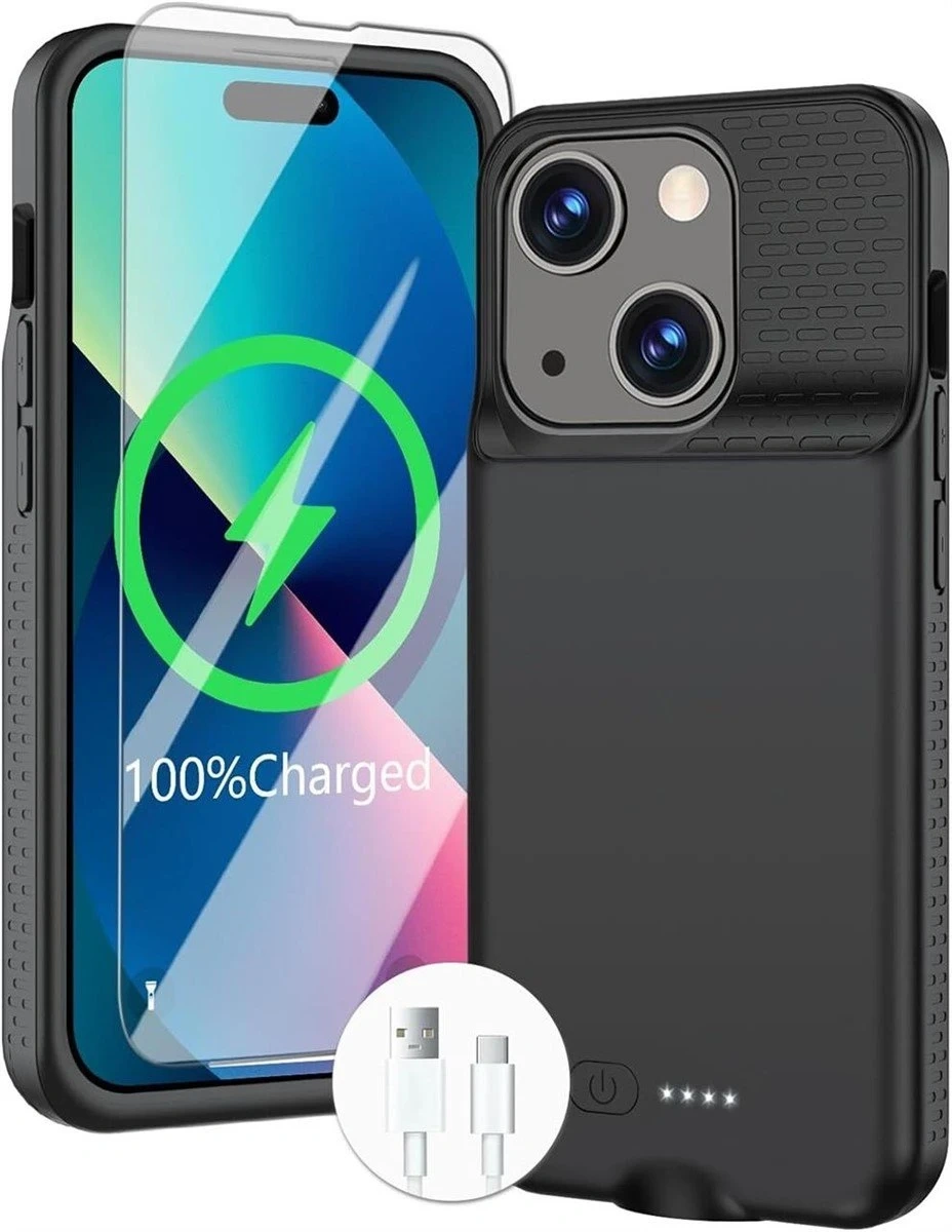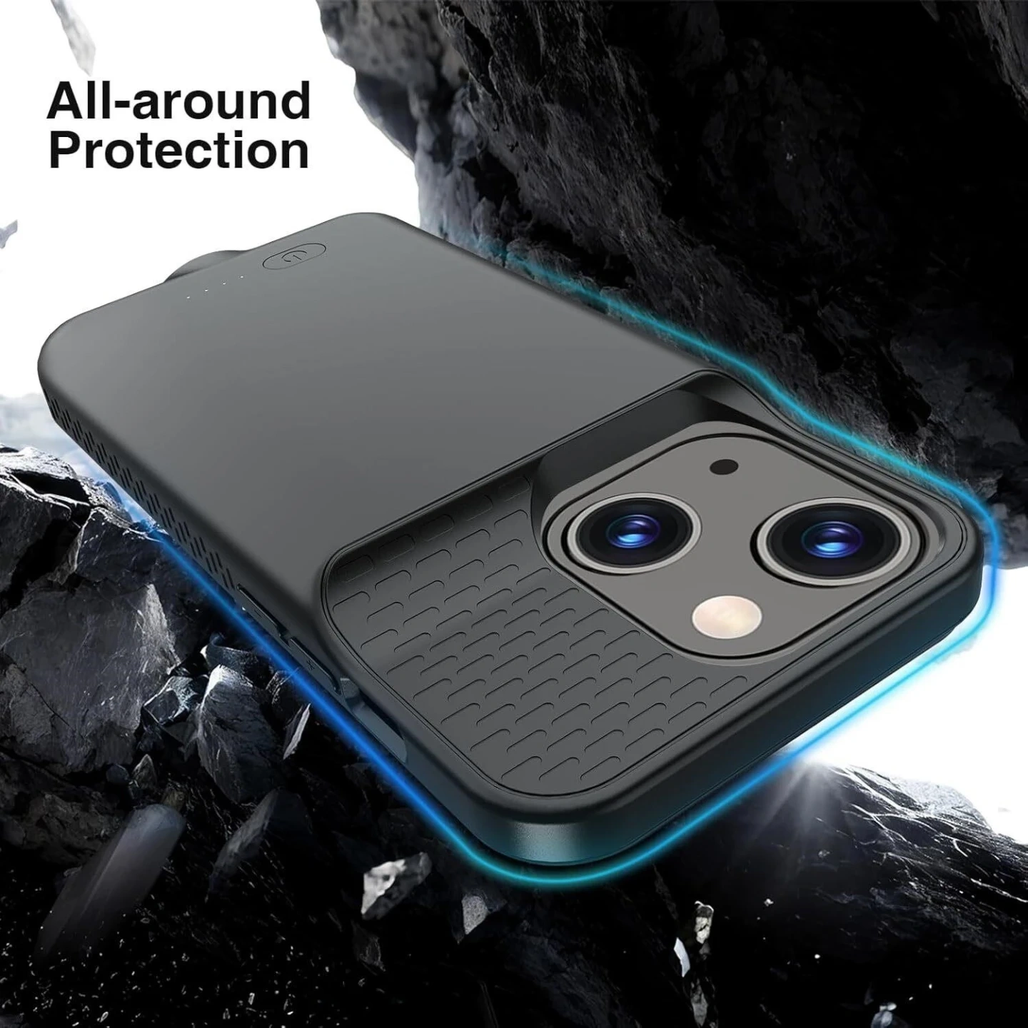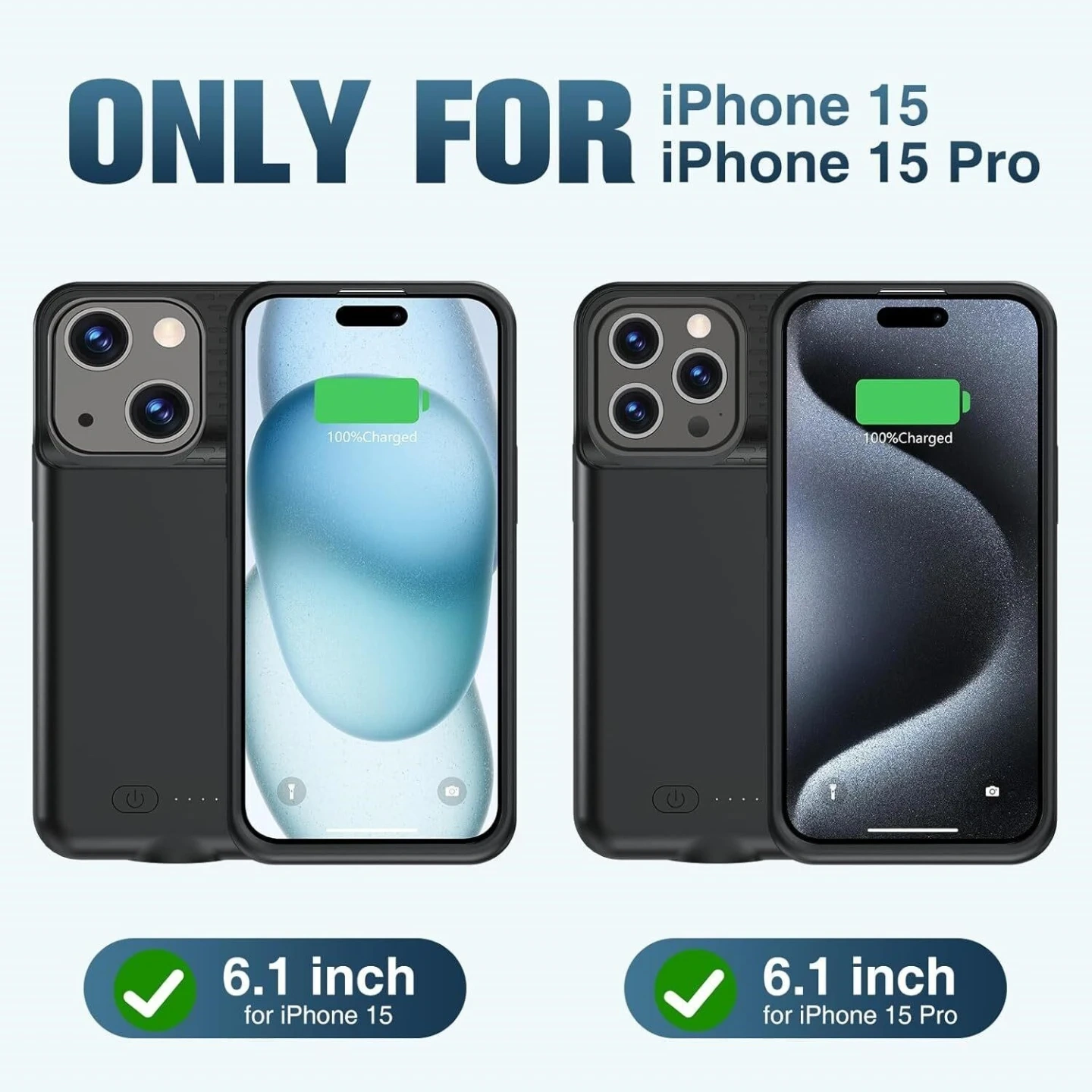 This is a 7000mAh battery case for the 6.1-inch iPhone 15 and iPhone 15 Pro. It offers all-around protection and provides 180% extra power. It also includes a 3A charging port and a power indicator.