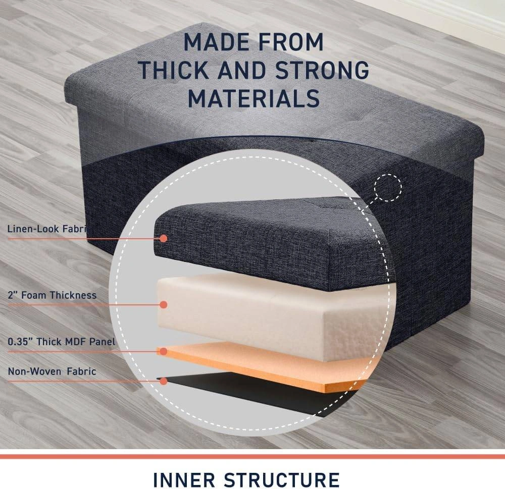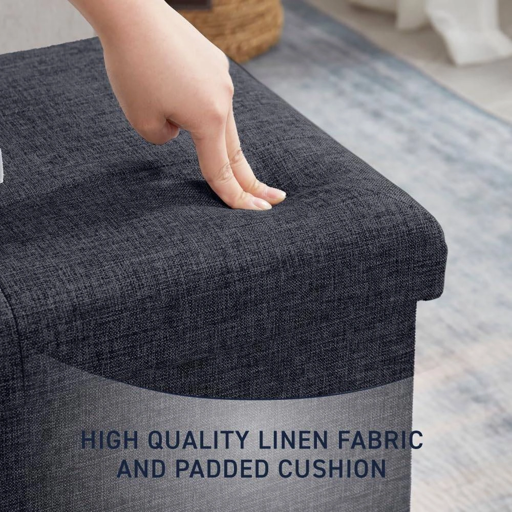 Foldable Tufted Linen Storage Ottoman Bench Foot Rest/Stool