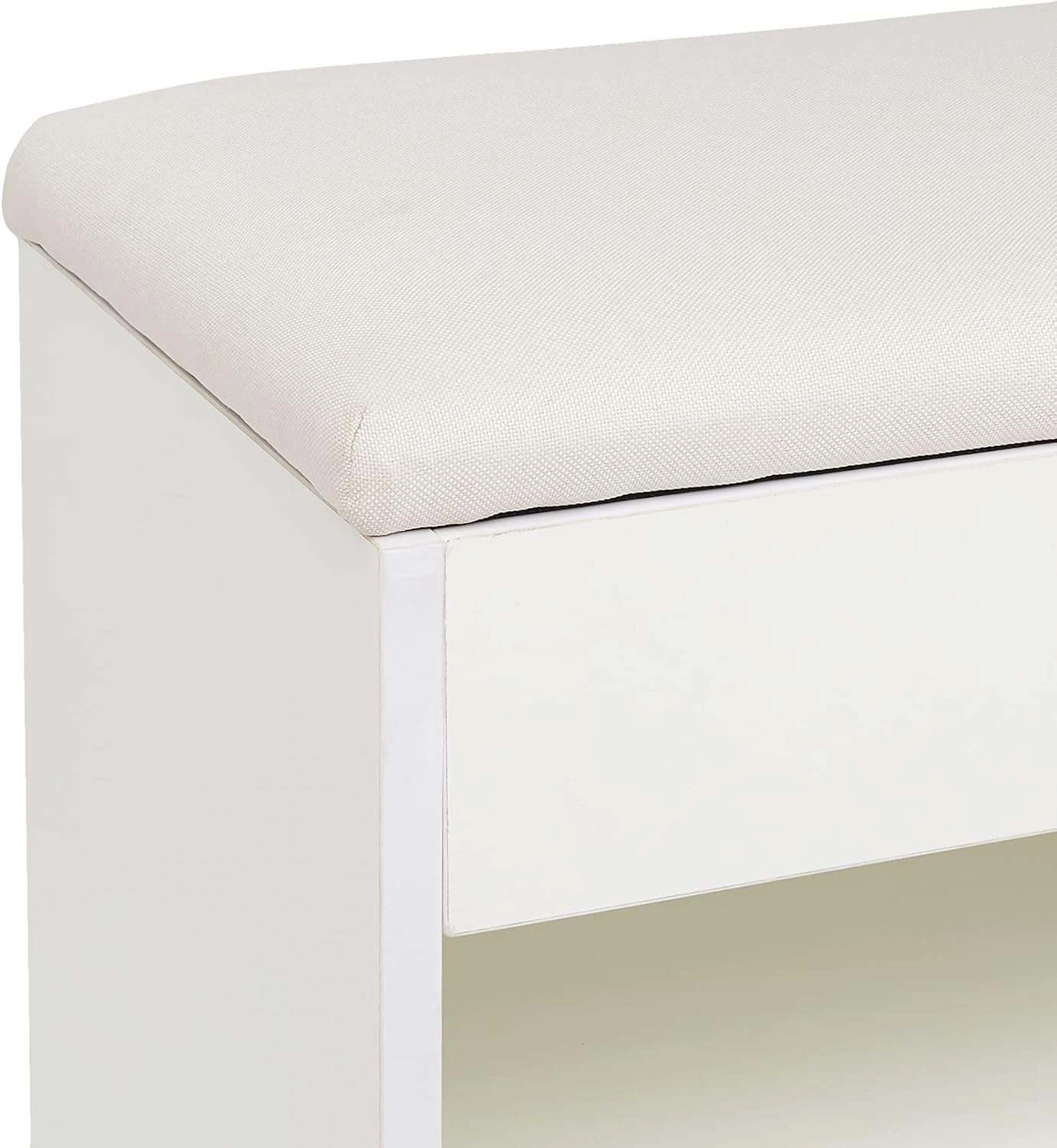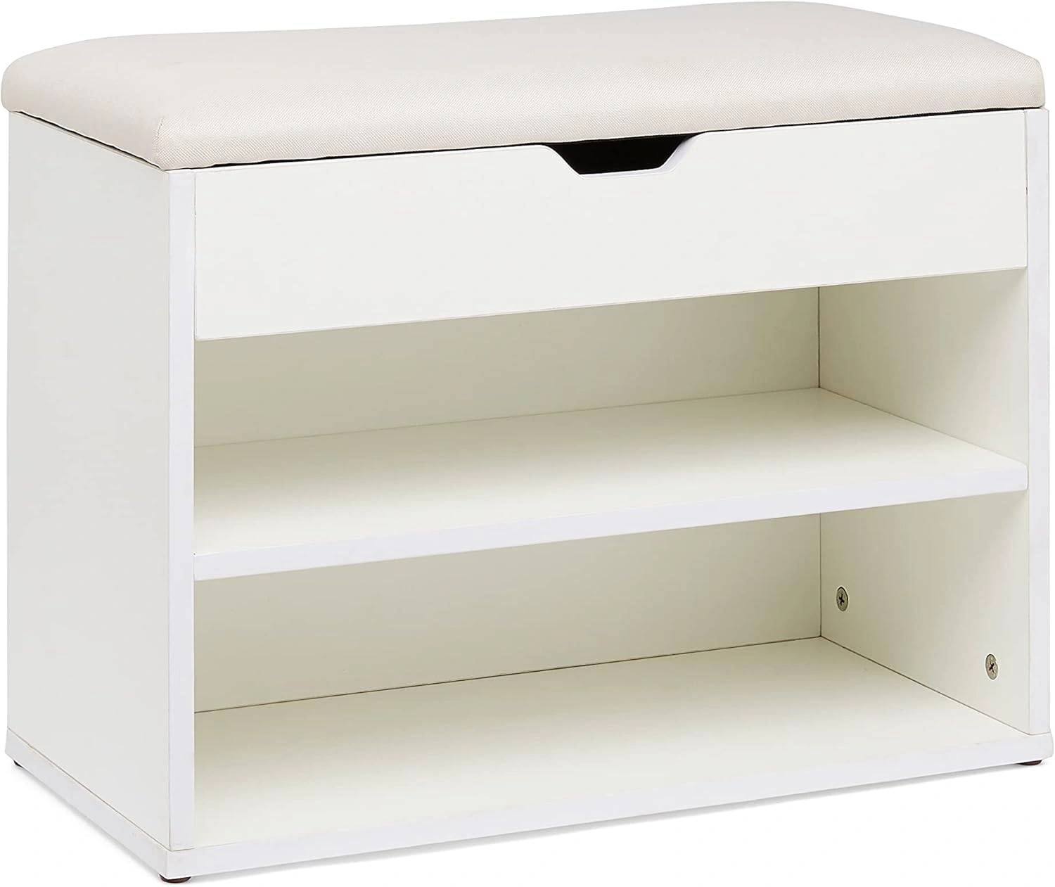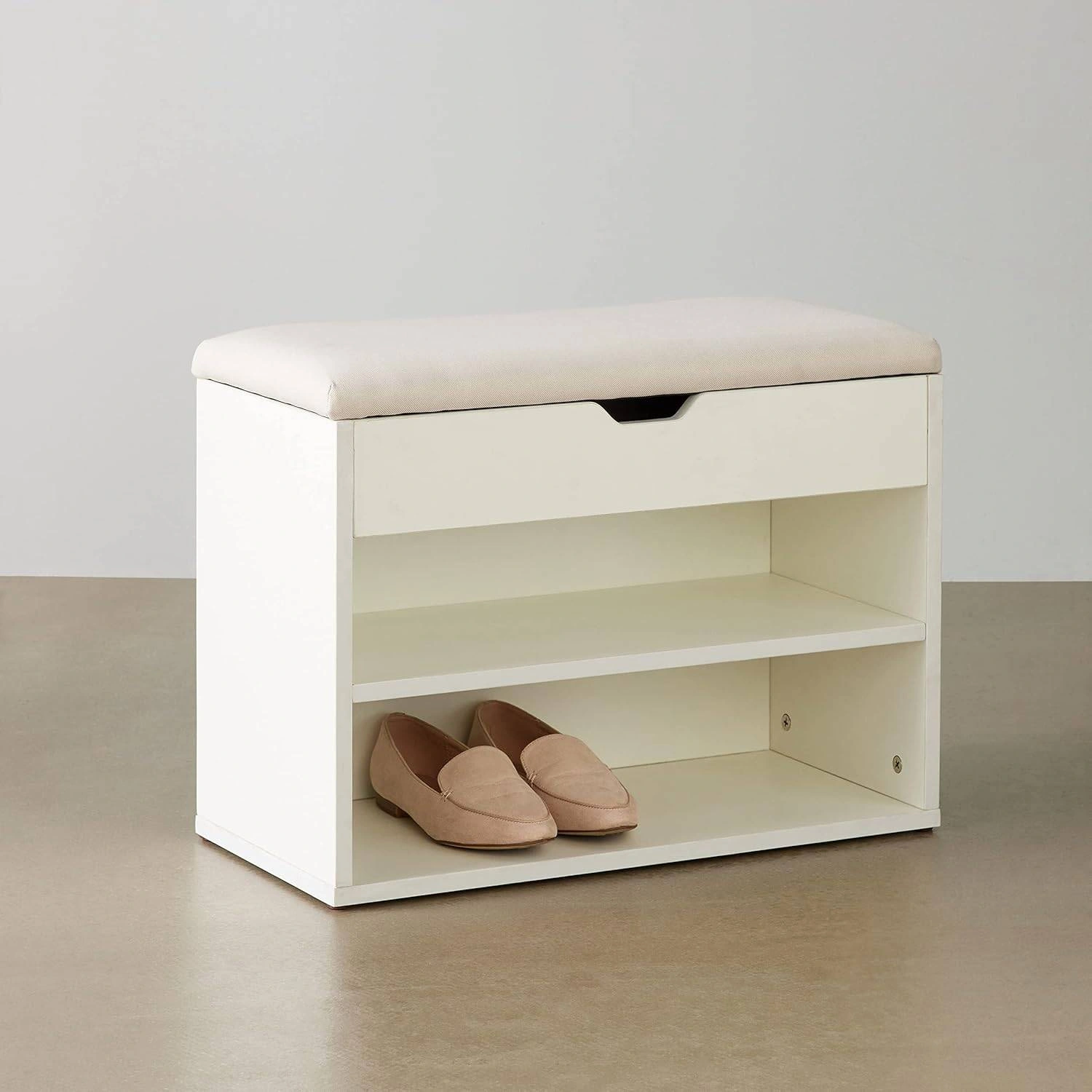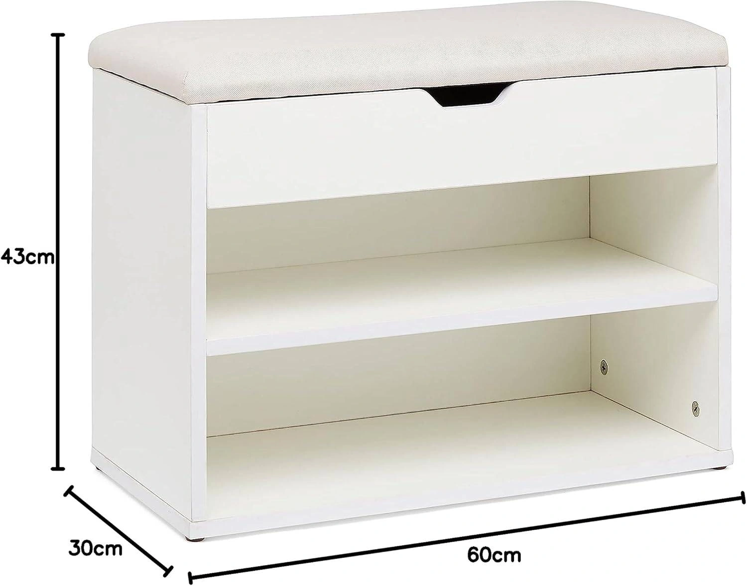 2 Tier Wooden Shoe Rack, Beige Fabric Cushion