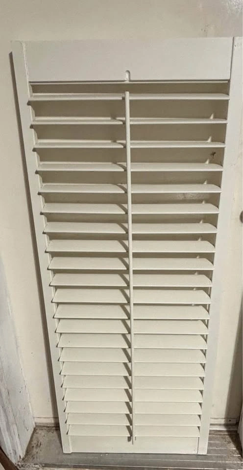 2 pairs of 14" x 29.25" each panel (opening 28 x 29.25) - $10 per panel. 2 pairs of 21" x 49" each panel - $10 per panel. Replaced windows/door so no longer needed. California wood shutters.