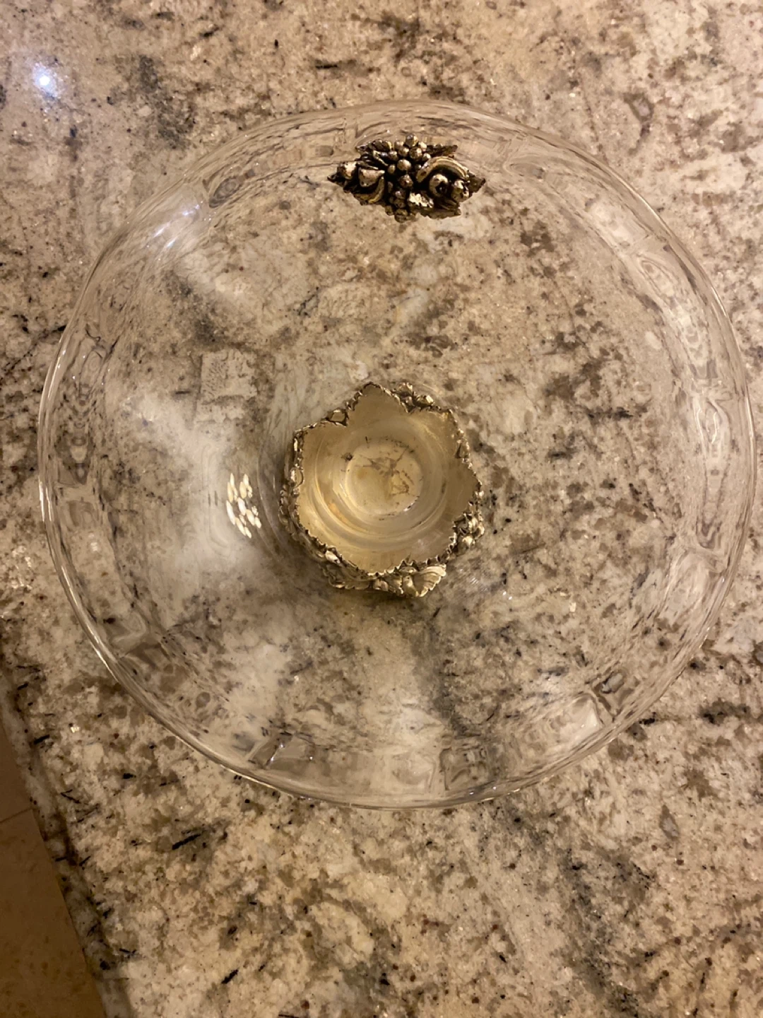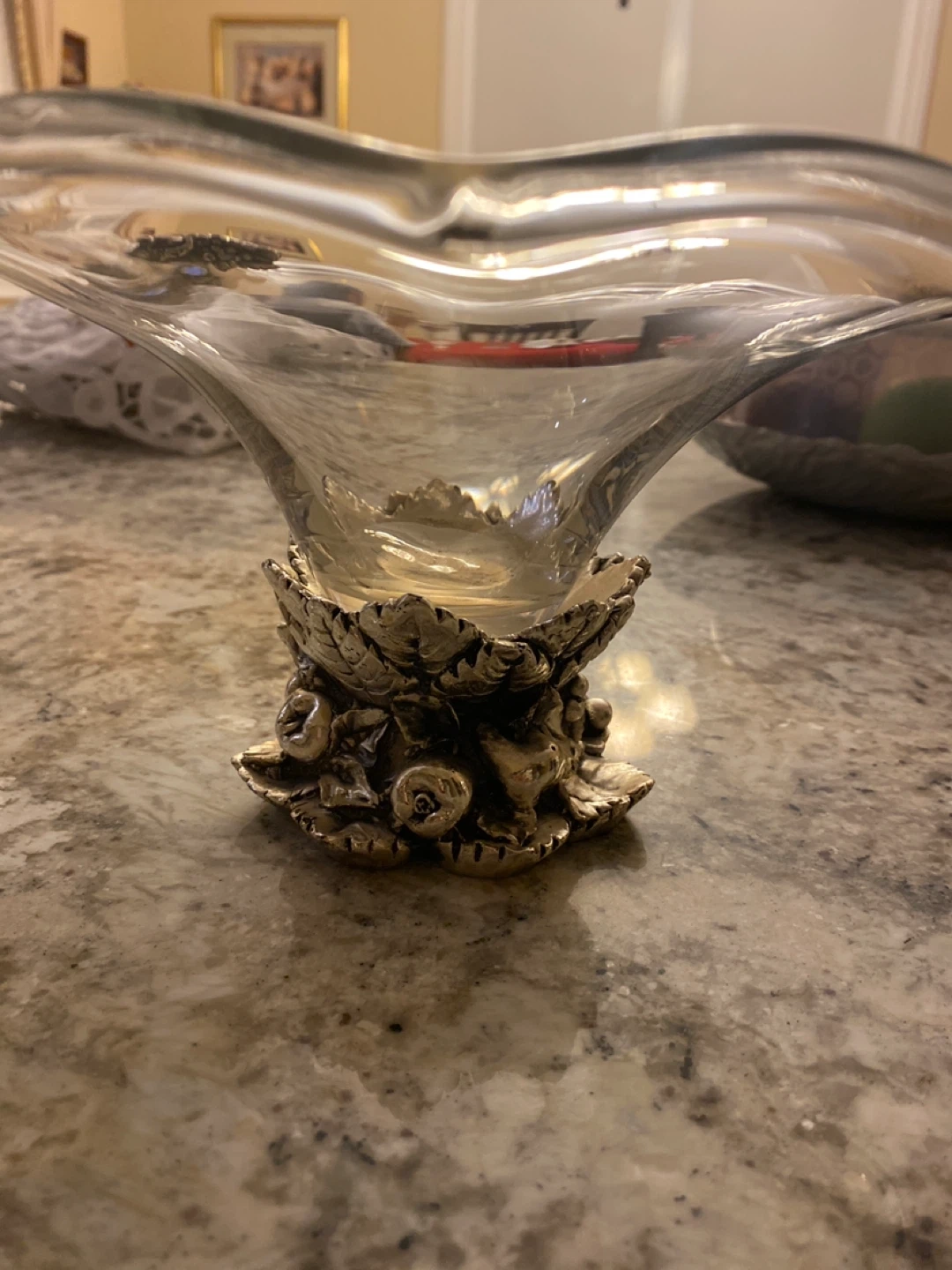 Glass footed serving bowl with ornate base