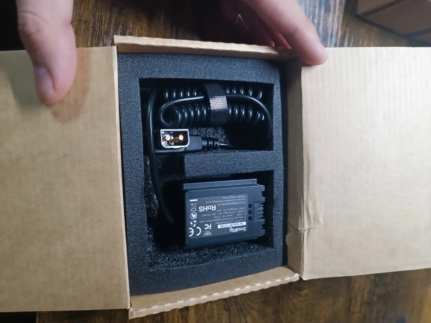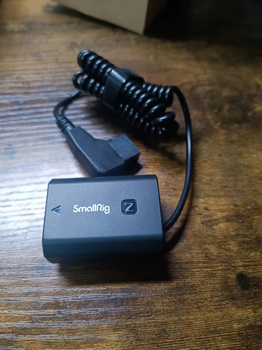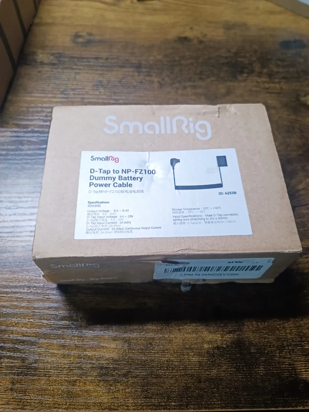 SmallRig D-Tap to NP-FZ100 dummy battery power cable. It's for powering cameras and has an input voltage of 10-26V and an output voltage of 8.0-8.4V. It includes a coiled cable for flexibility.