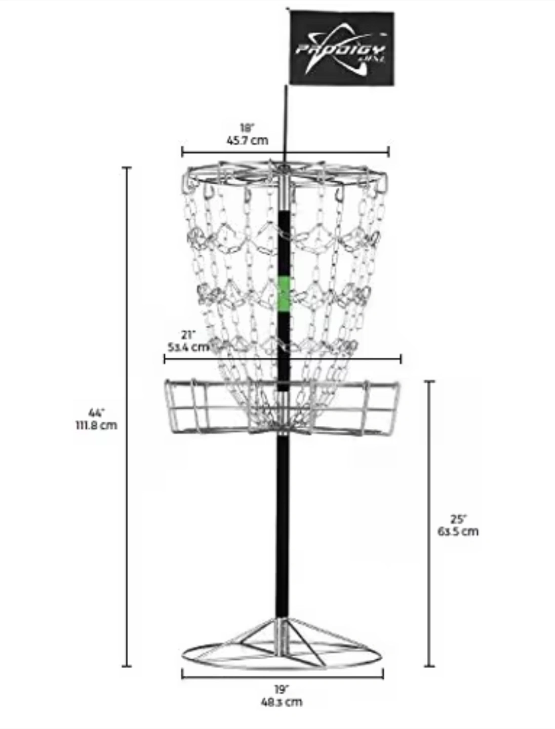 Never opened .This is a portable disc golf target from Prodigy Disc. It's lightweight, portable, and made with a durable steel frame. The target features a unique patent pending chain design. It's portable and collapsible, fitting into less than 2 cubic feet of storage space.