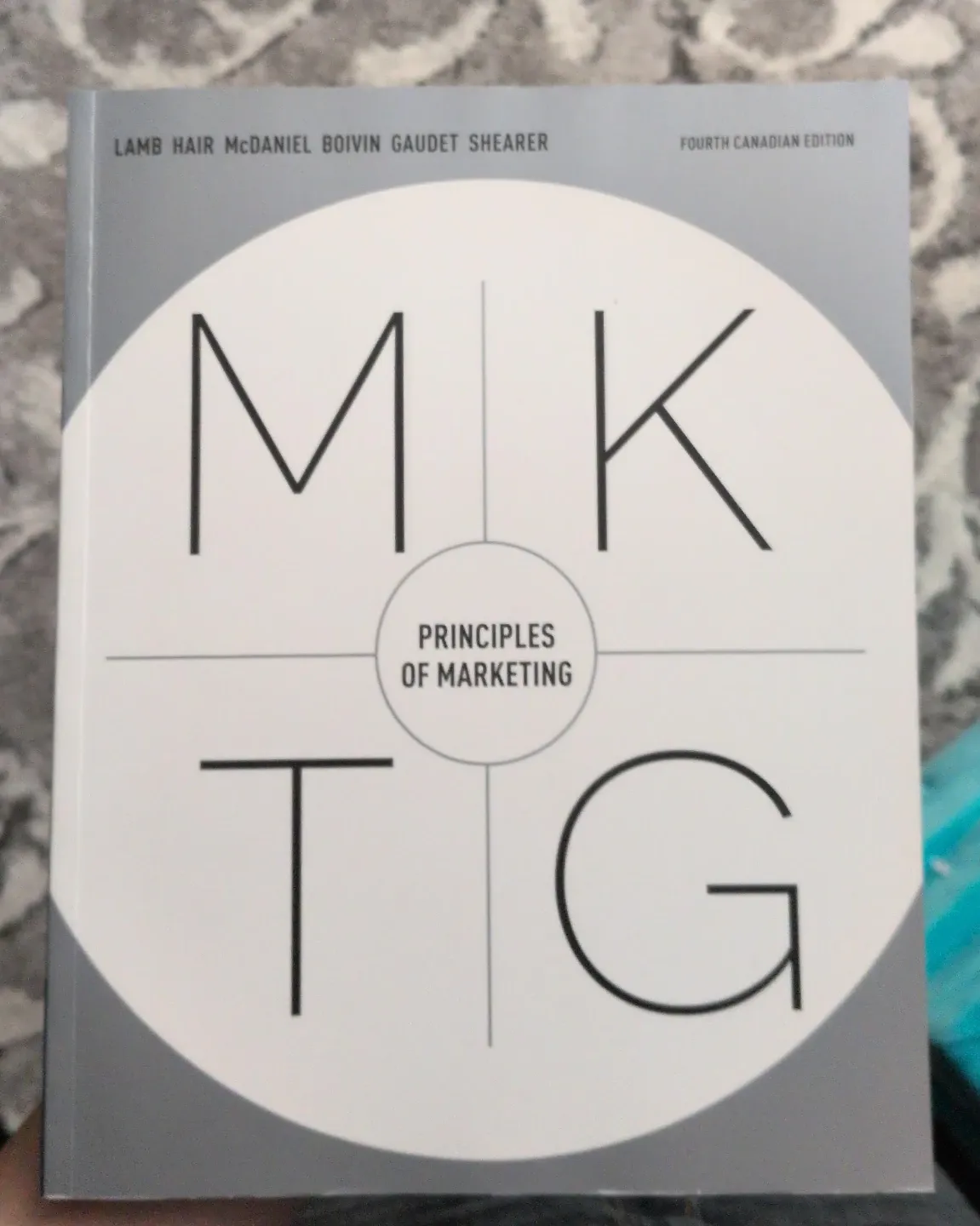 Principles of Marketing textbook, Fourth Canadian Edition. Authors include Lamb, McDaniel, Boivin, Gaudet, and Shearer. Covers fundamental marketing concepts.